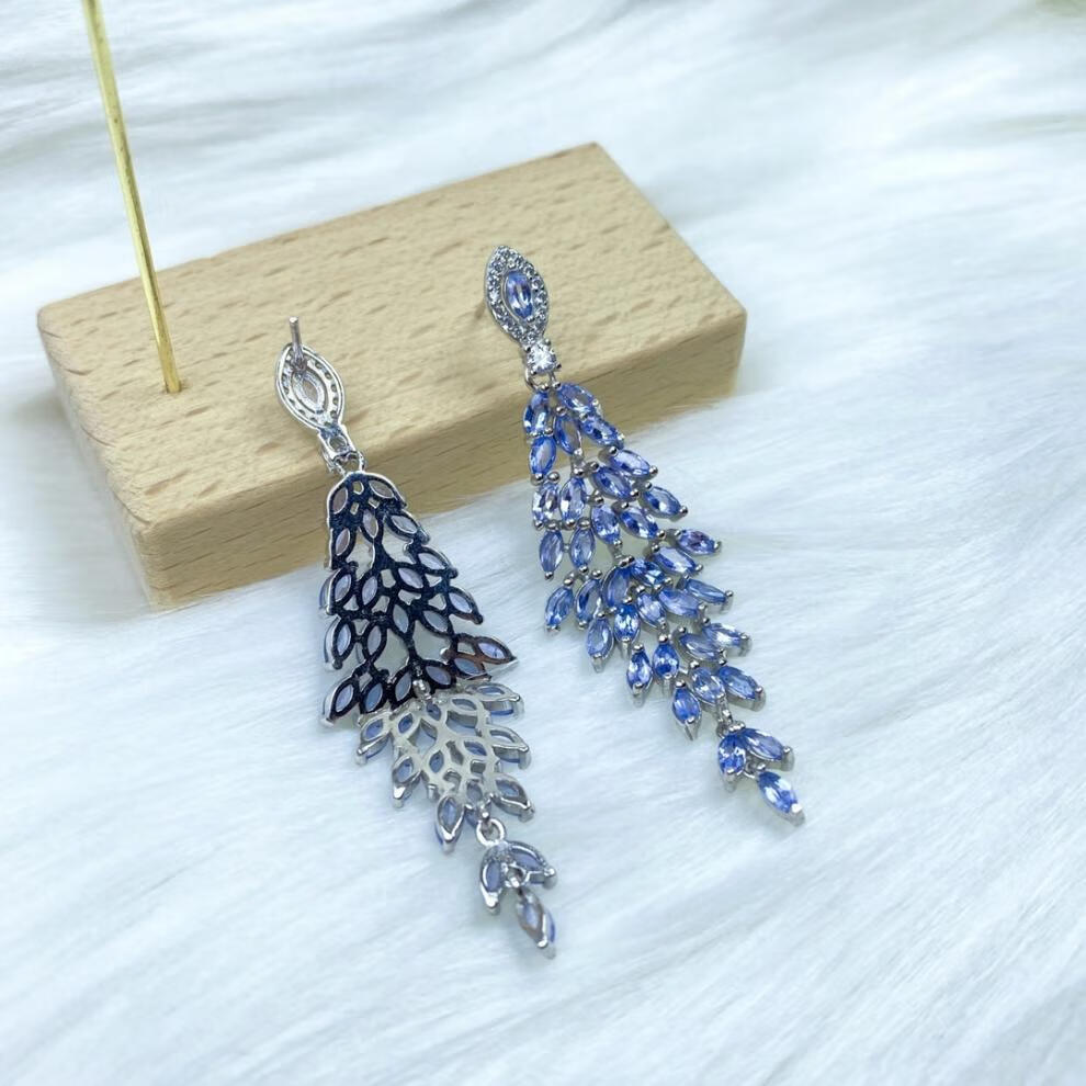 Yixiang Tanzanite Banquet S925 Silver Luxurious Gemstone Tanzanite Earrings Temperament European and American Evening Makeup Earrings Tanzanite Banquet S925 Silver Luxury