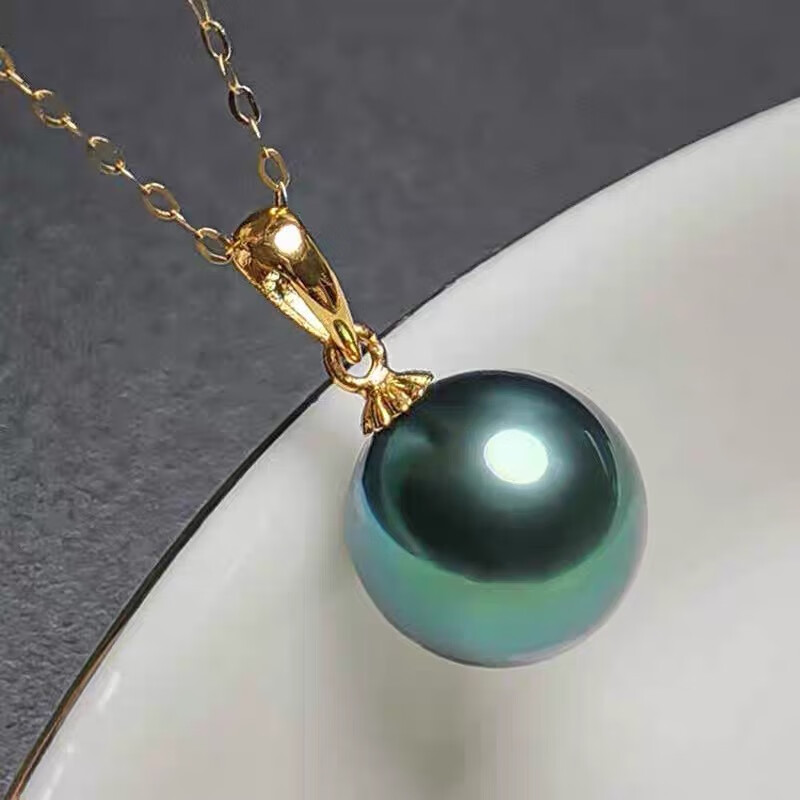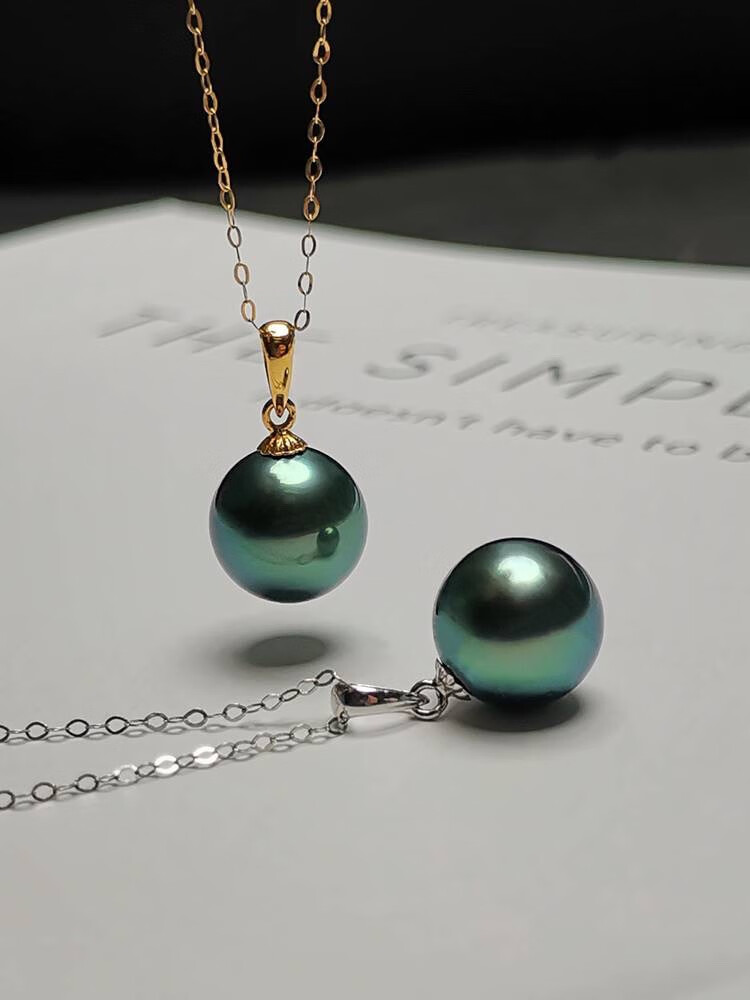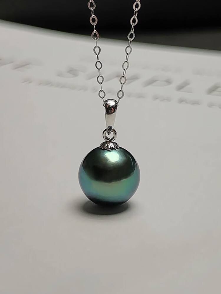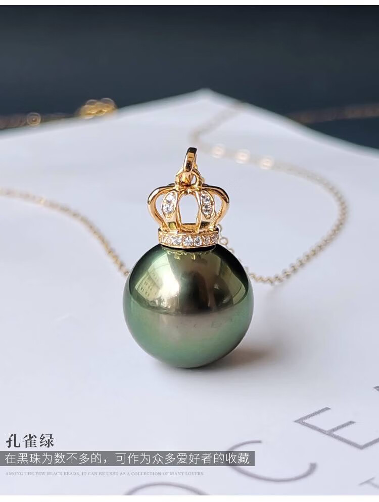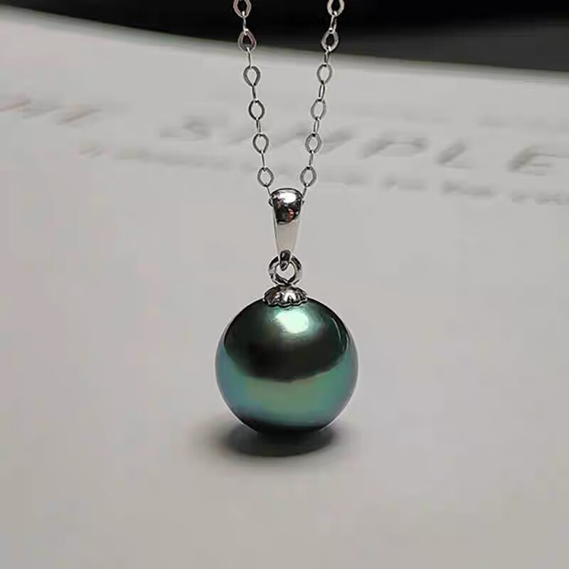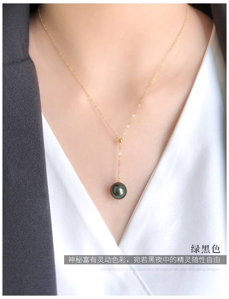 Fat Donglai's same style black pearl pendant 925 silver Tahitian peacock green female Venus black butterfly oyster pearl light luxury 12mm peacock green gold melon seed buckle