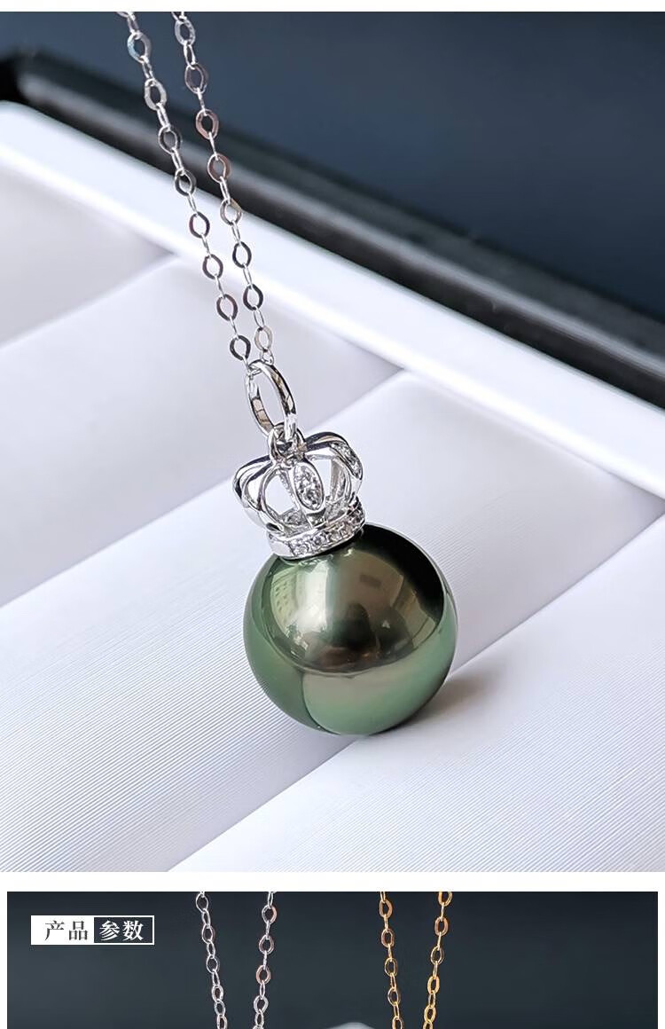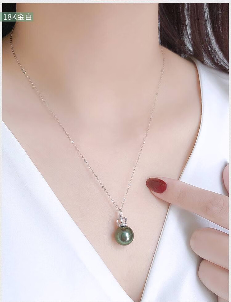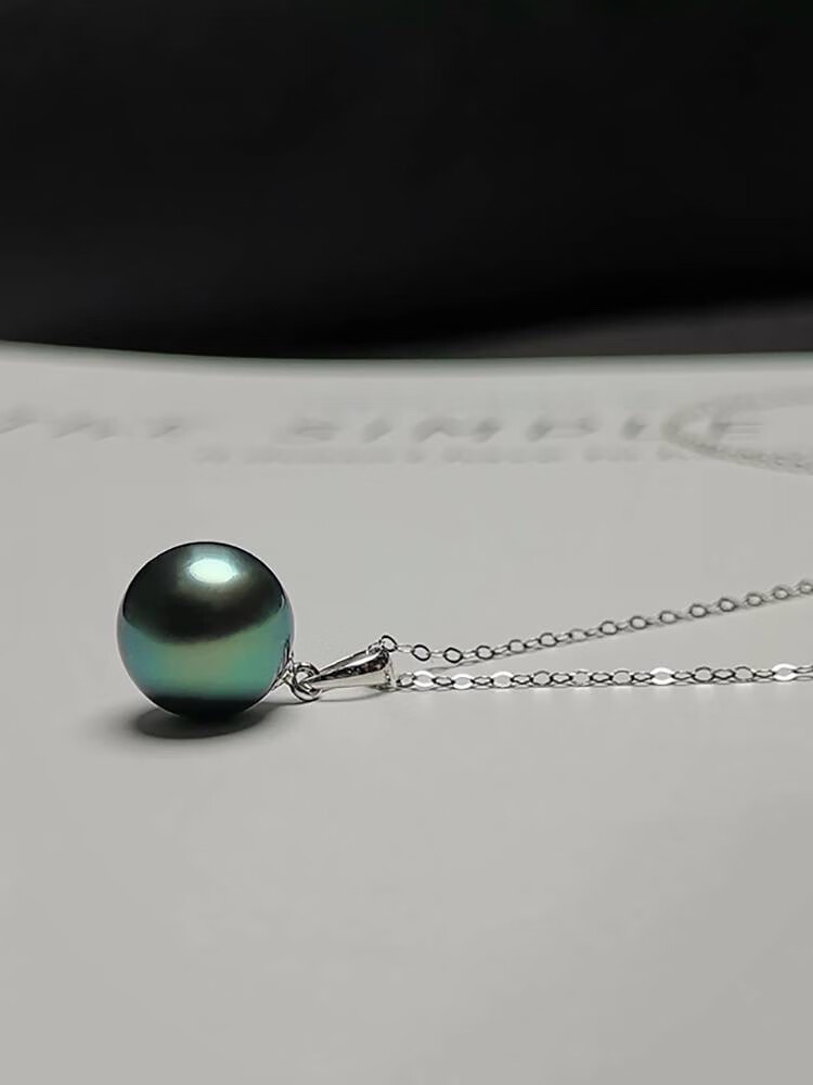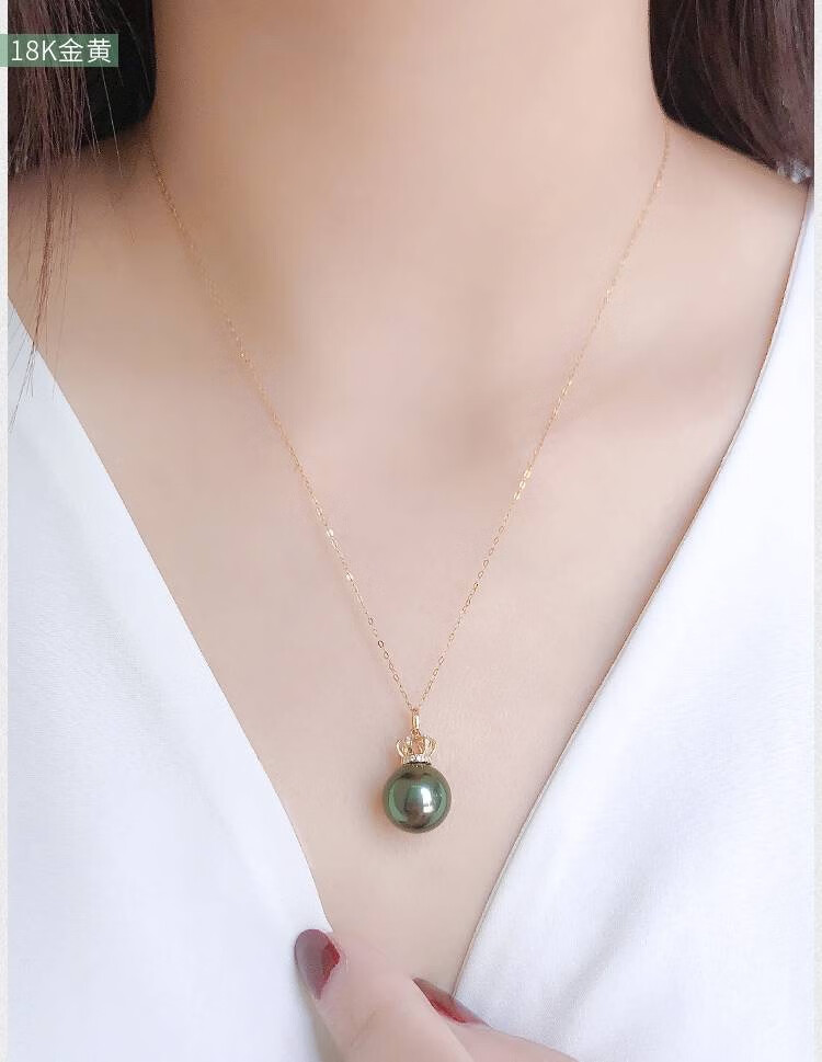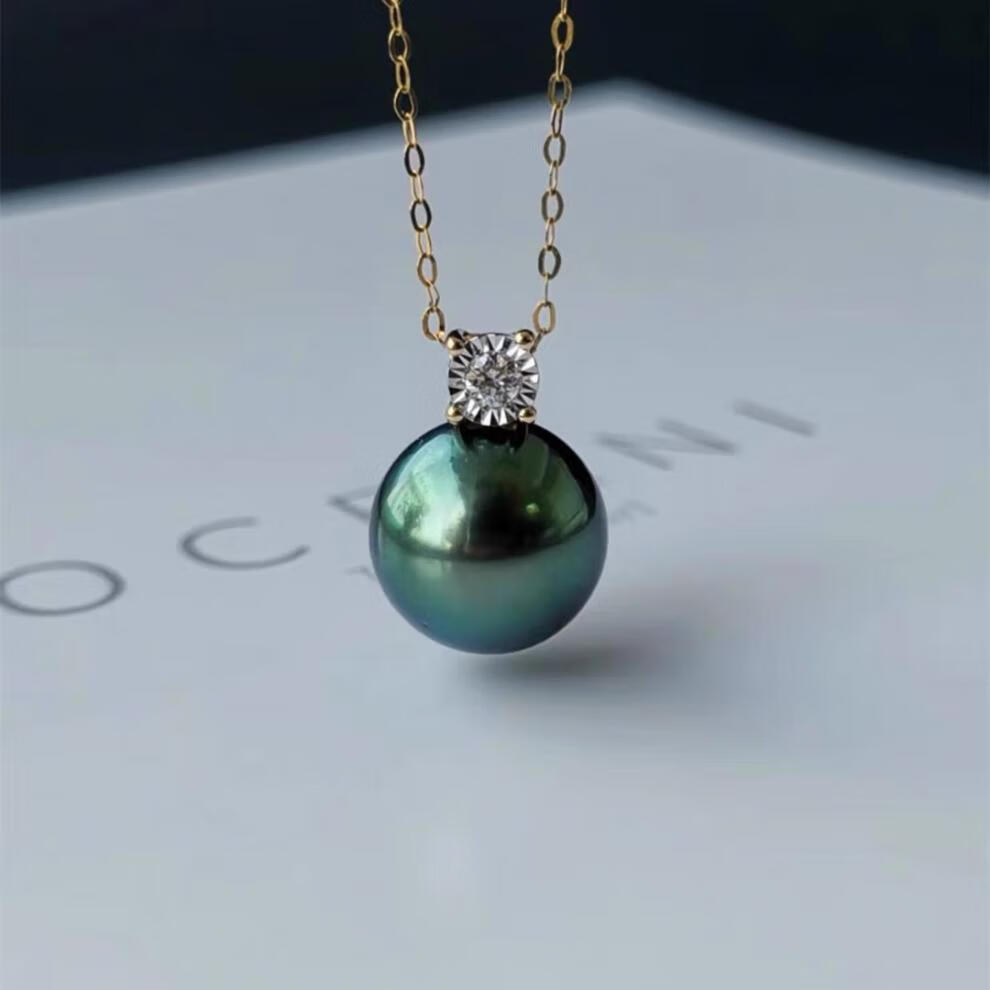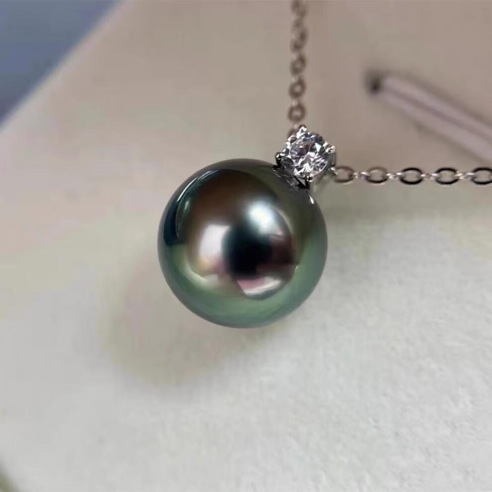 Fat Donglai's same style black pearl pendant 925 silver Tahitian peacock green female Venus black butterfly oyster pearl light luxury 12mm peacock green gold melon seed buckle