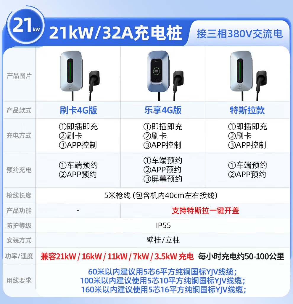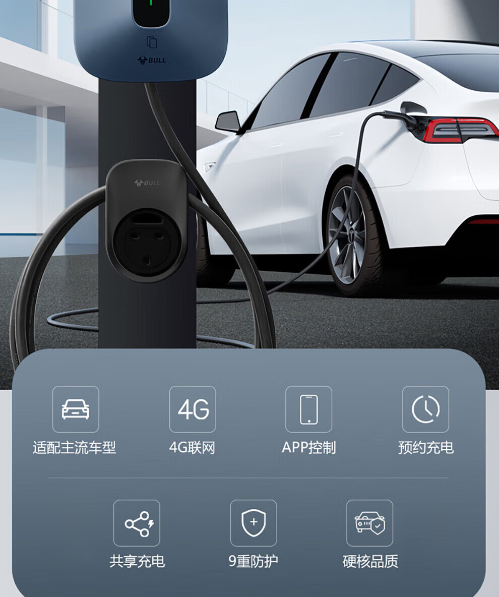 Bull Charging Pile Gun New Energy Electric Vehicle Home AC Pile 7/11/21KW Suitable for Tesla Xpeng Extreme Krypton Ideal Huawei Ask the World M9 Mercedes-Benz Xiaomi Avita 7kw Fashion Swipe Card Model Does Not Include Installation