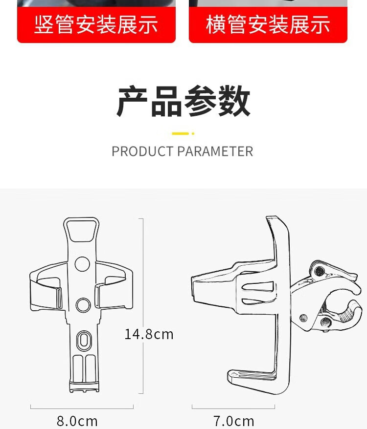 Gu Jianmu can freely hang the water bottle holder without drilling holes, mountain bike water cup holder, battery, electric vehicle drink holder, riding pipe clip lock - black, 1 pack