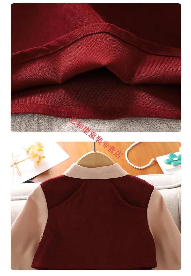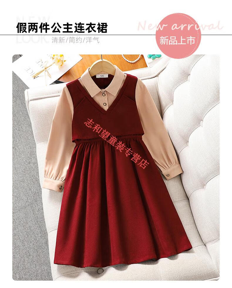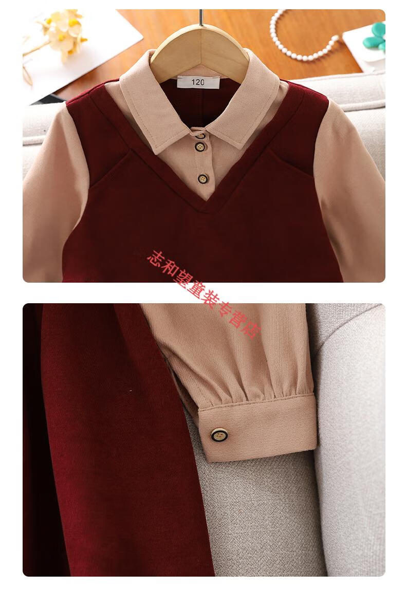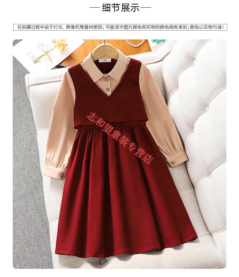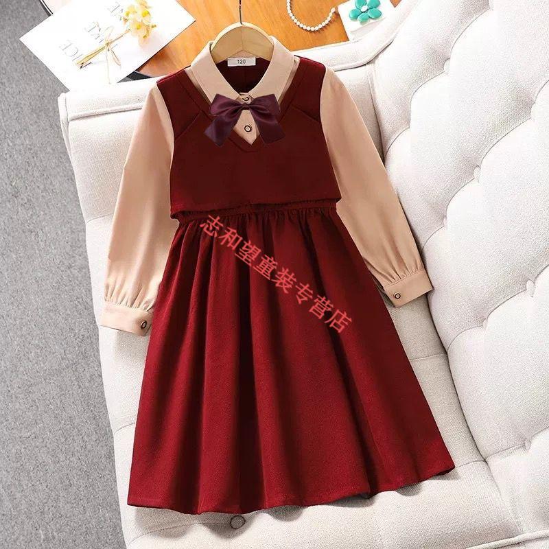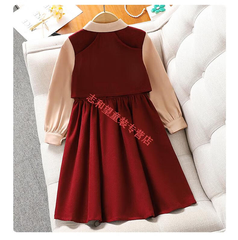 G.duck girls dress spring and autumn new trendy middle-aged and older children's college style male skirt little girl fake two-piece princess dress red 140