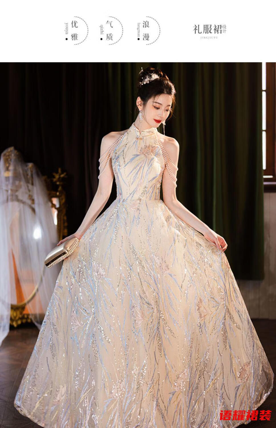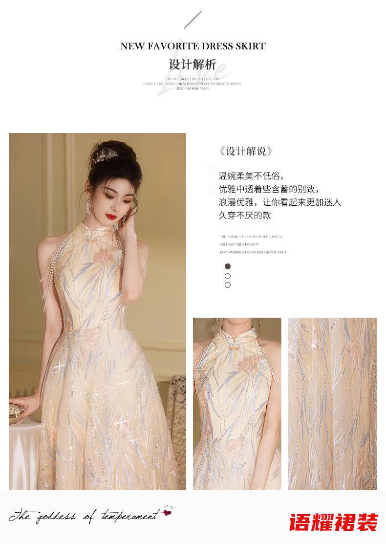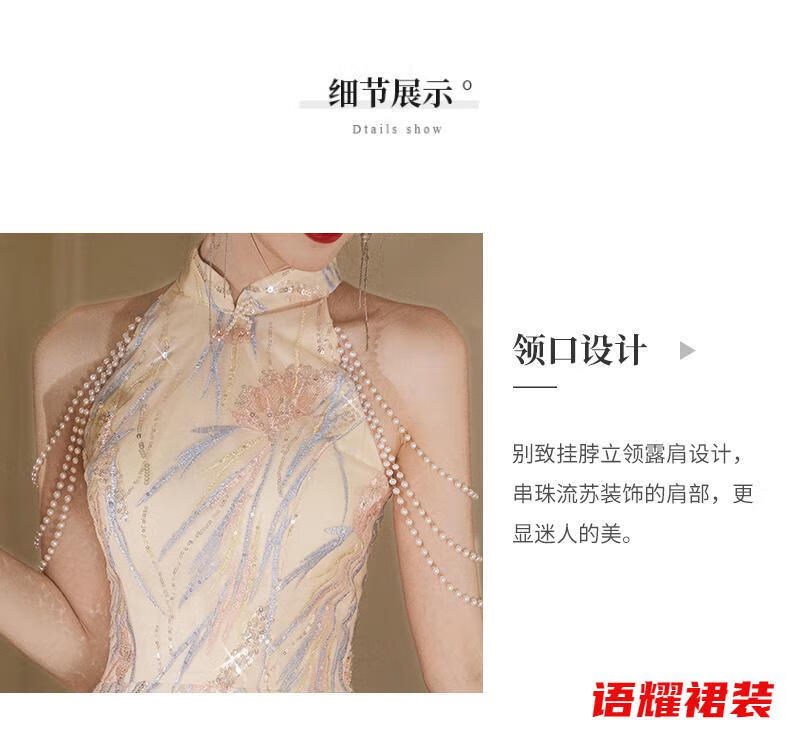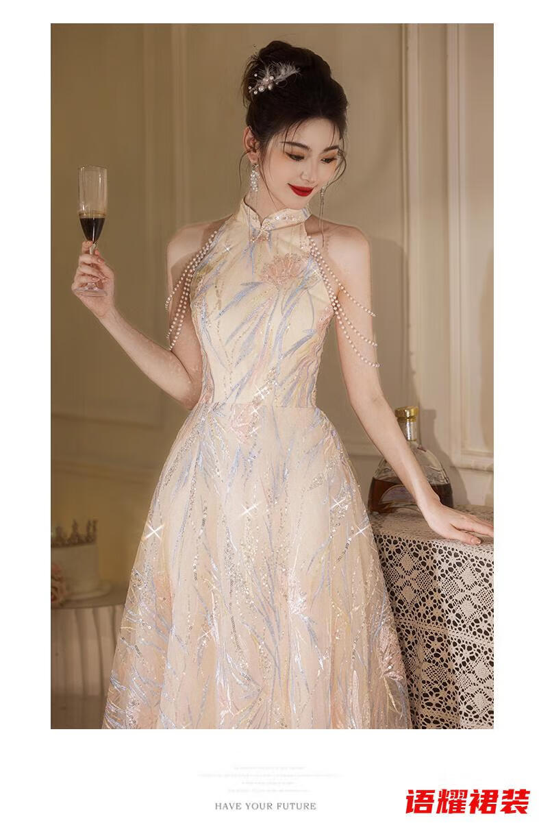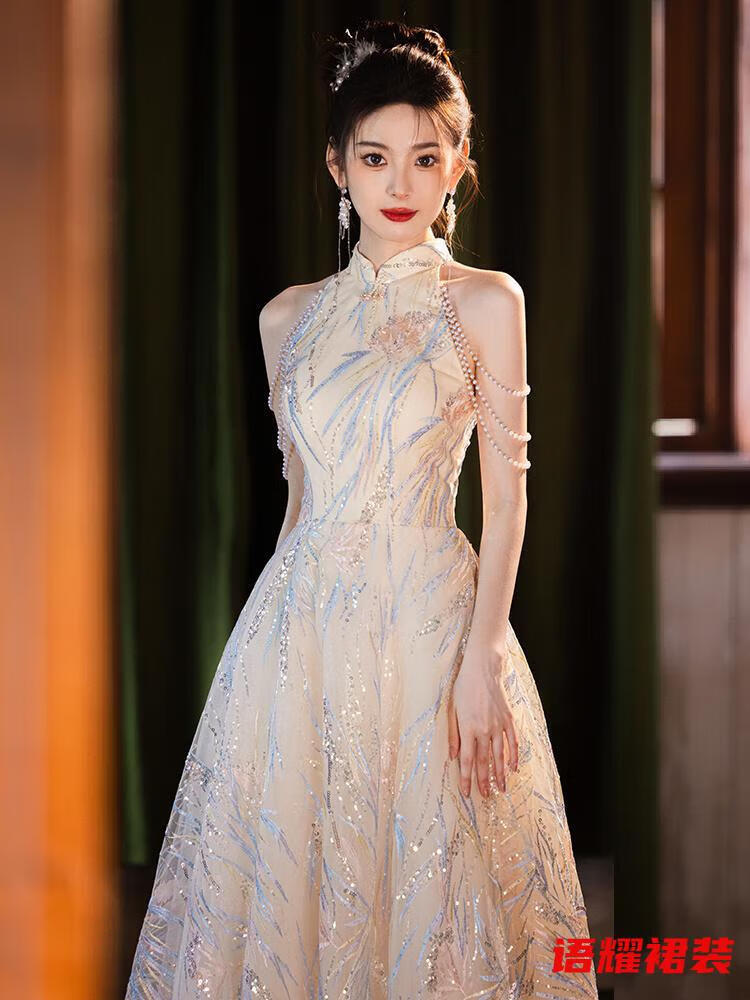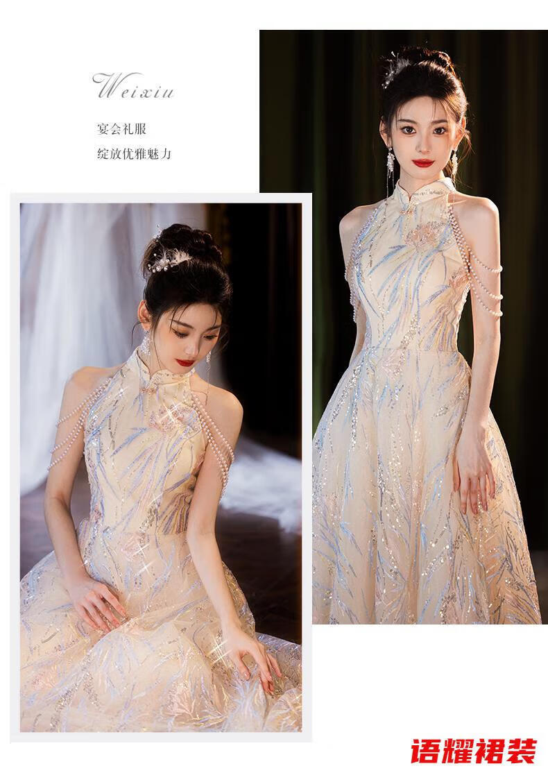 Zhizhoufeng Xiaowei evening dress skirt women's new toasting dress bride new Chinese style high-end light luxury niche flat L