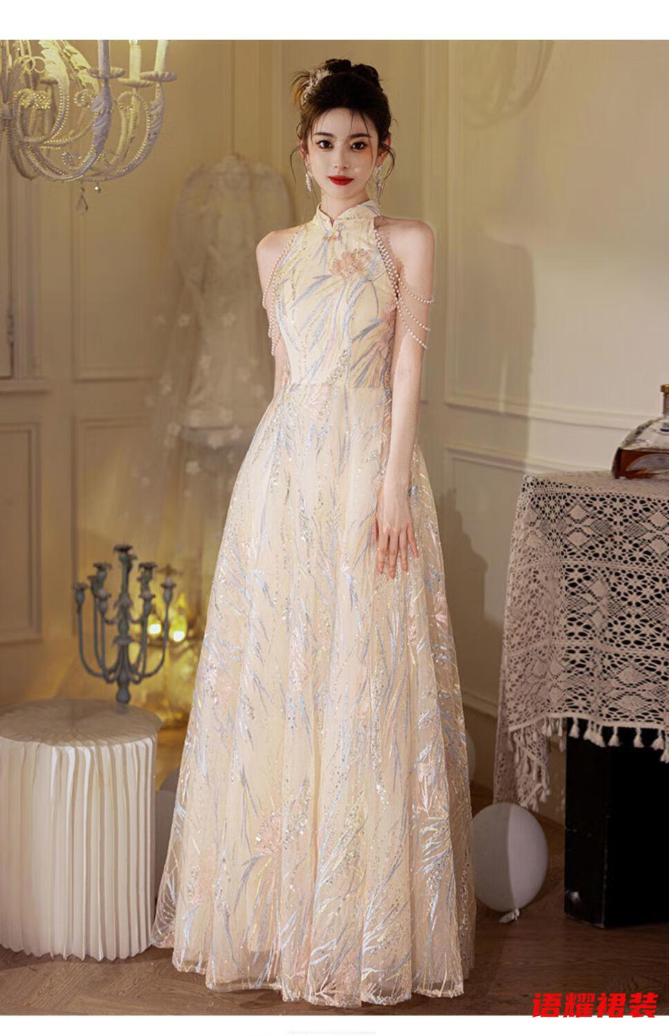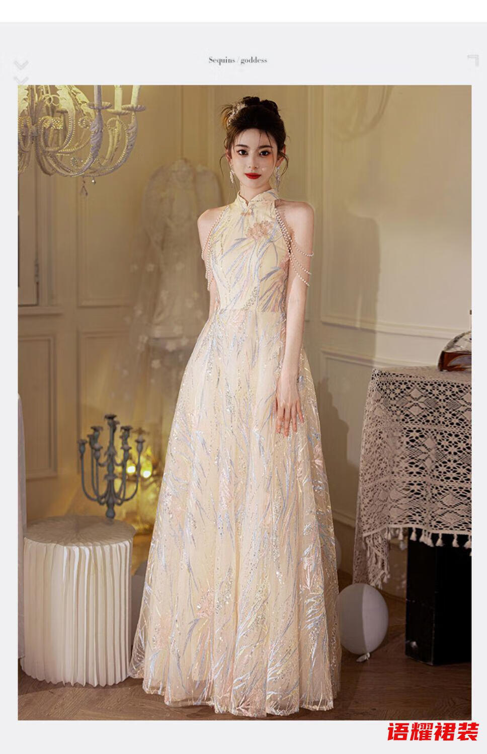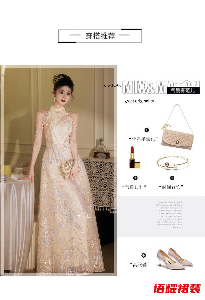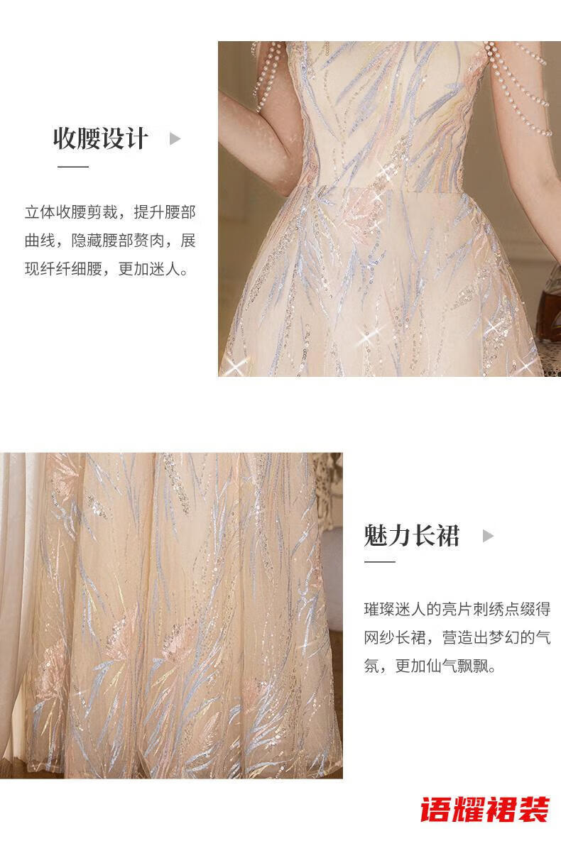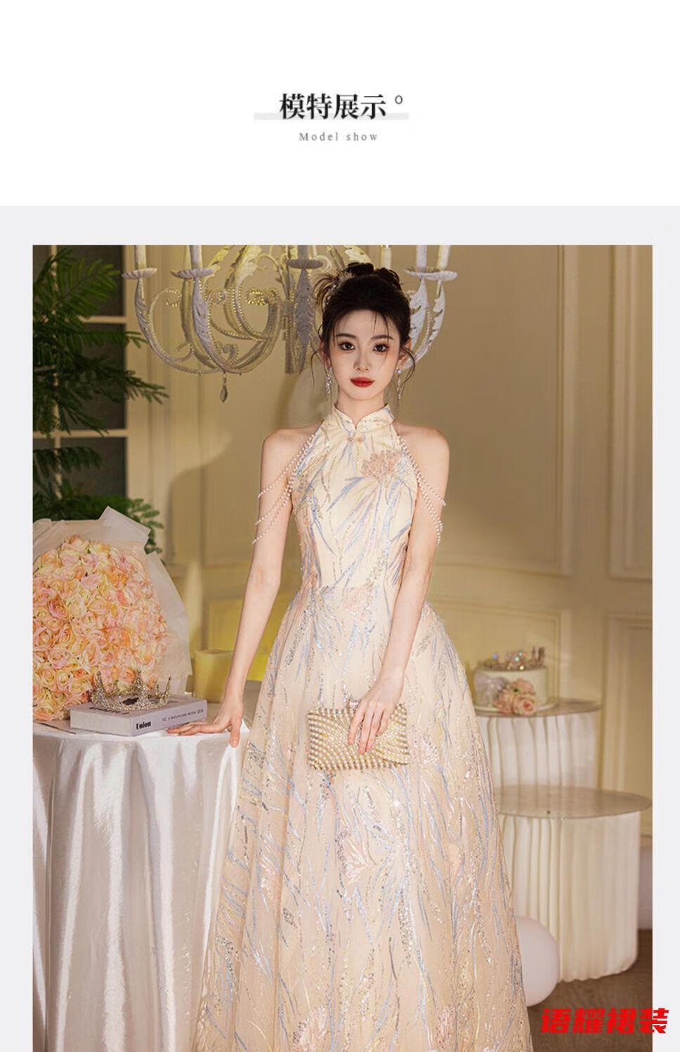 Zhizhoufeng Xiaowei evening dress skirt women's new toasting dress bride new Chinese style high-end light luxury niche flat L