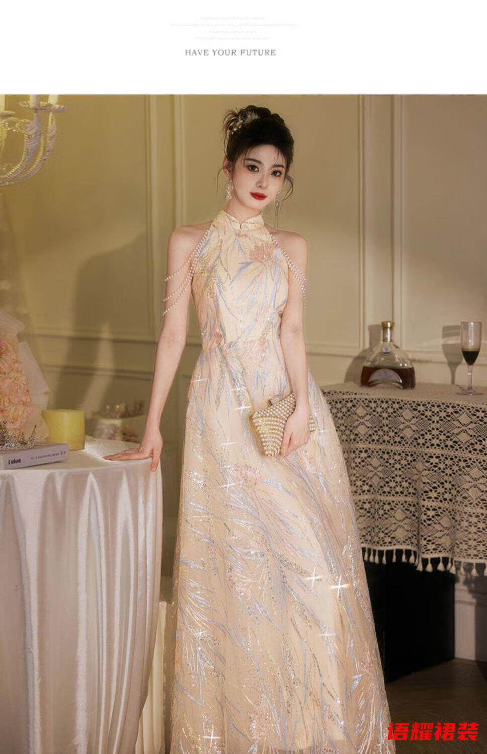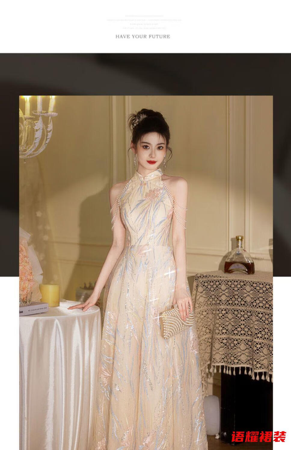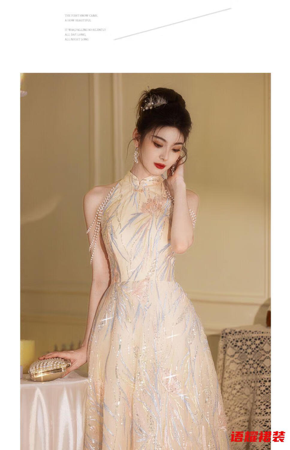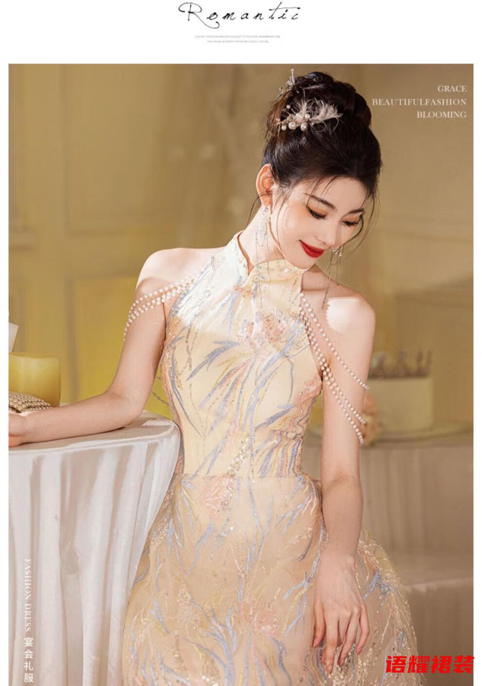 Zhizhoufeng Xiaowei evening dress skirt women's new toasting dress bride new Chinese style high-end light luxury niche flat L