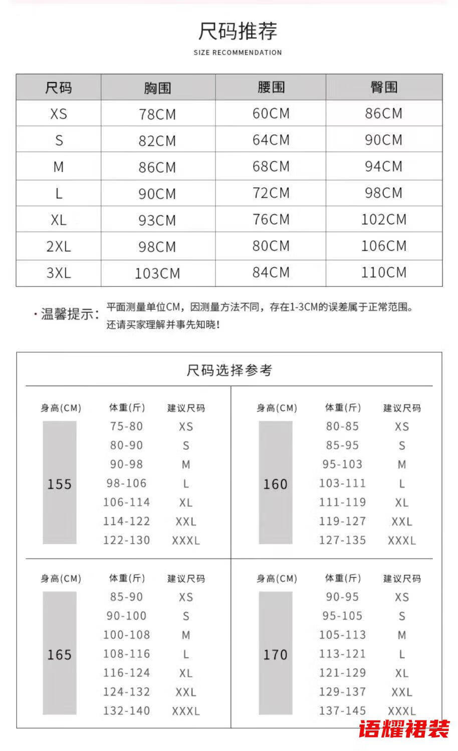 China (cm) 160-165/84-86 165-170 / 88-90 167-172 / 92-96 168-173 / 98-102 170-176 / 106-110