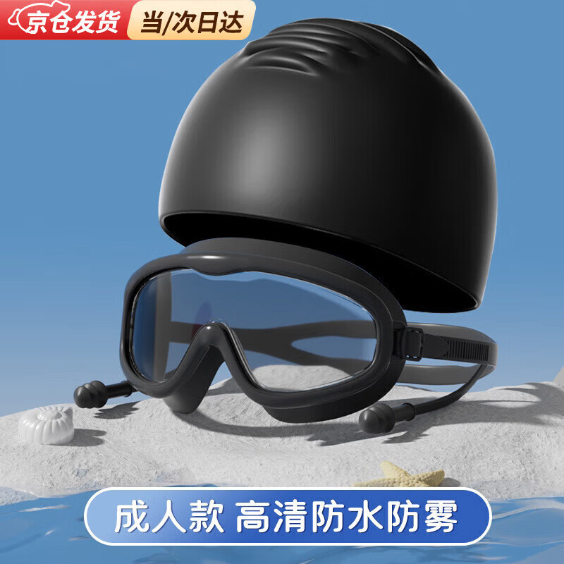 Gu Jianmu Swimming Goggles Swimming Cap Set Swimming Goggles Women's Large Frame Waterproof Non-wet Hair Next Day Delivery Earplugs Three White Swimming Goggles Swimming Cap Nose Clip