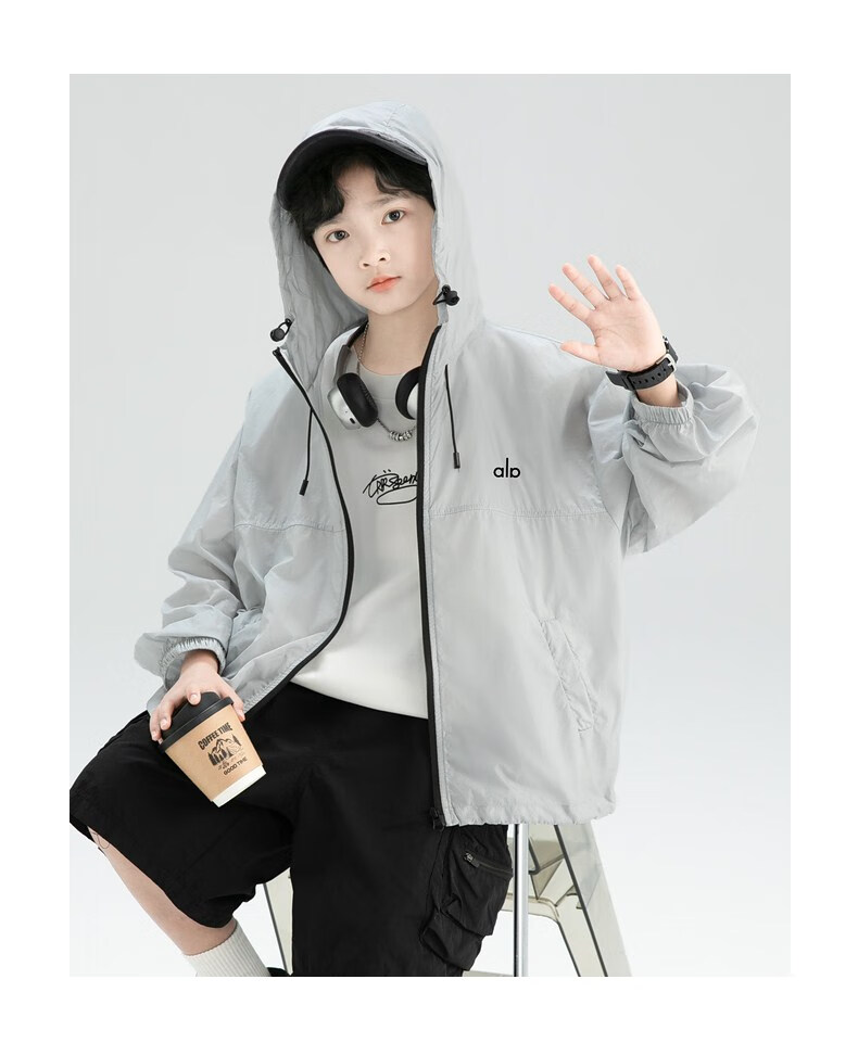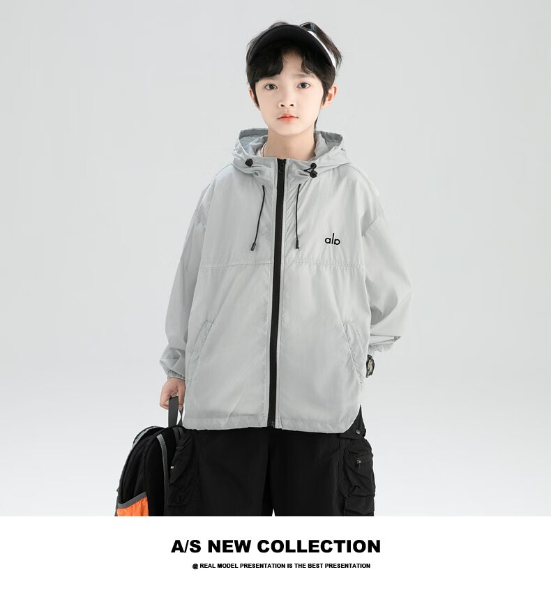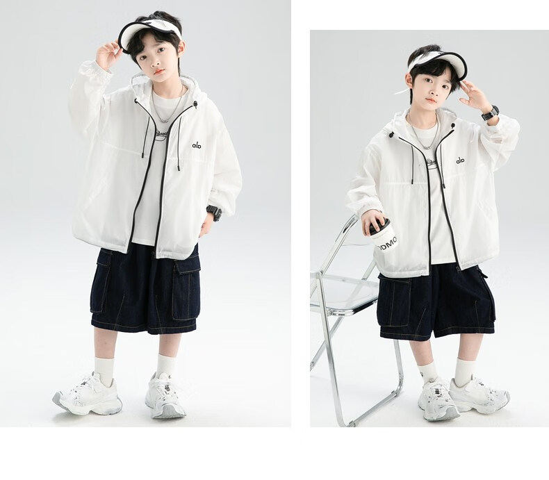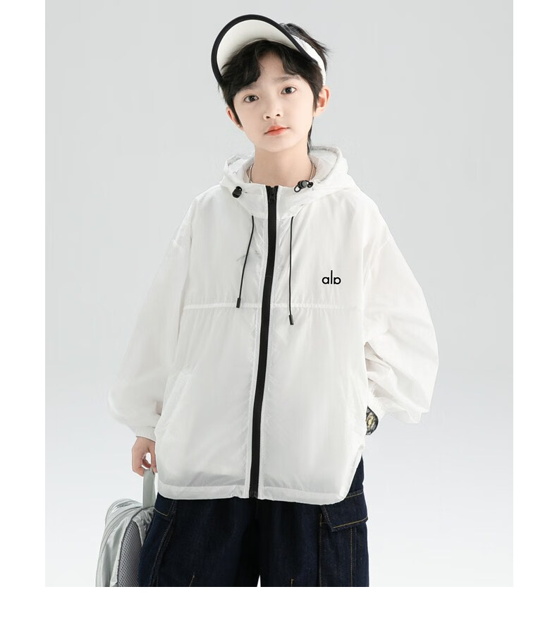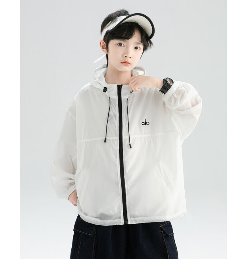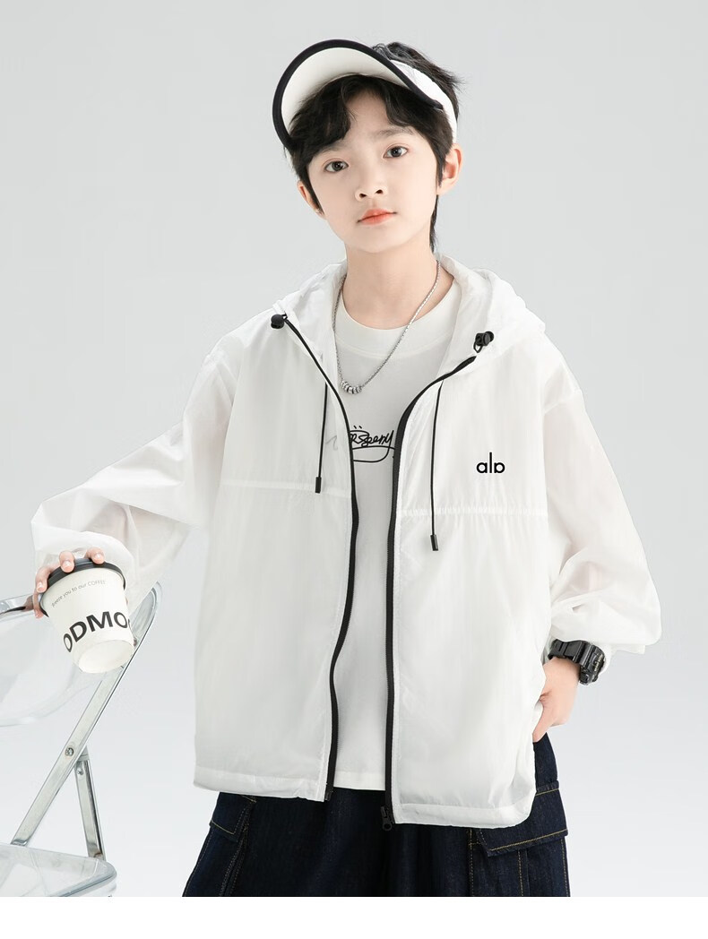WVD American brand clothing summer thin section 2025 new children's summer sun protection clothing jacket medium and large children boys summer style trendy white 140 CM