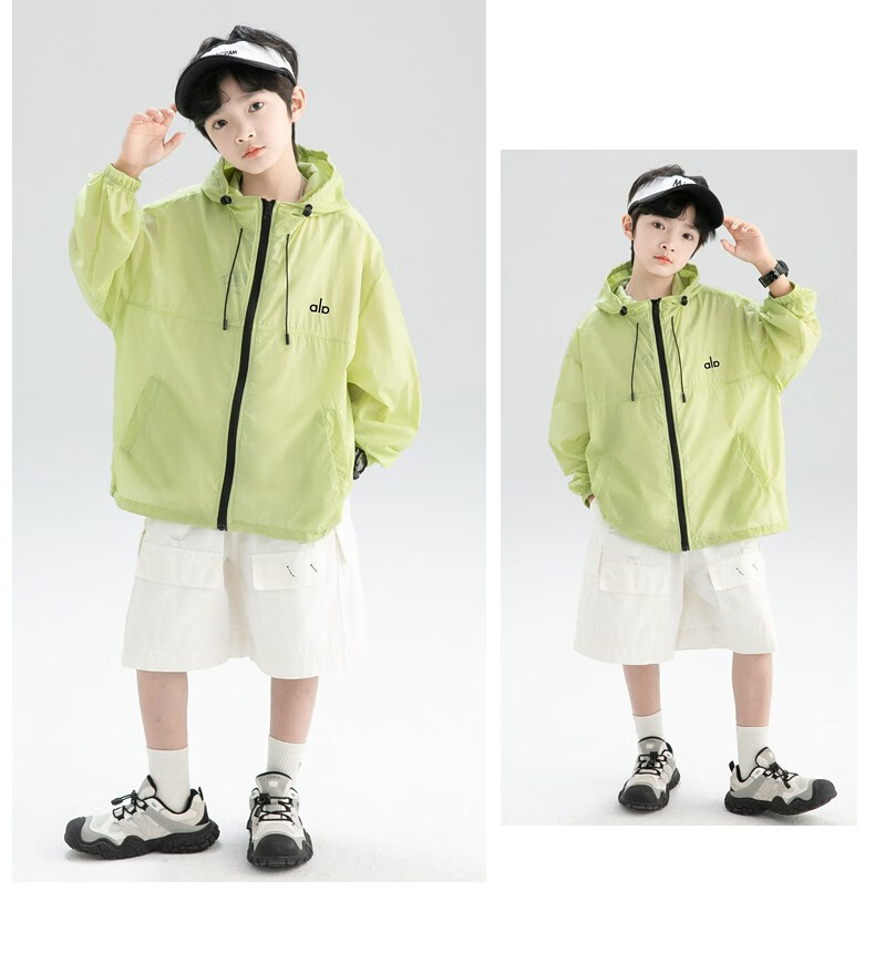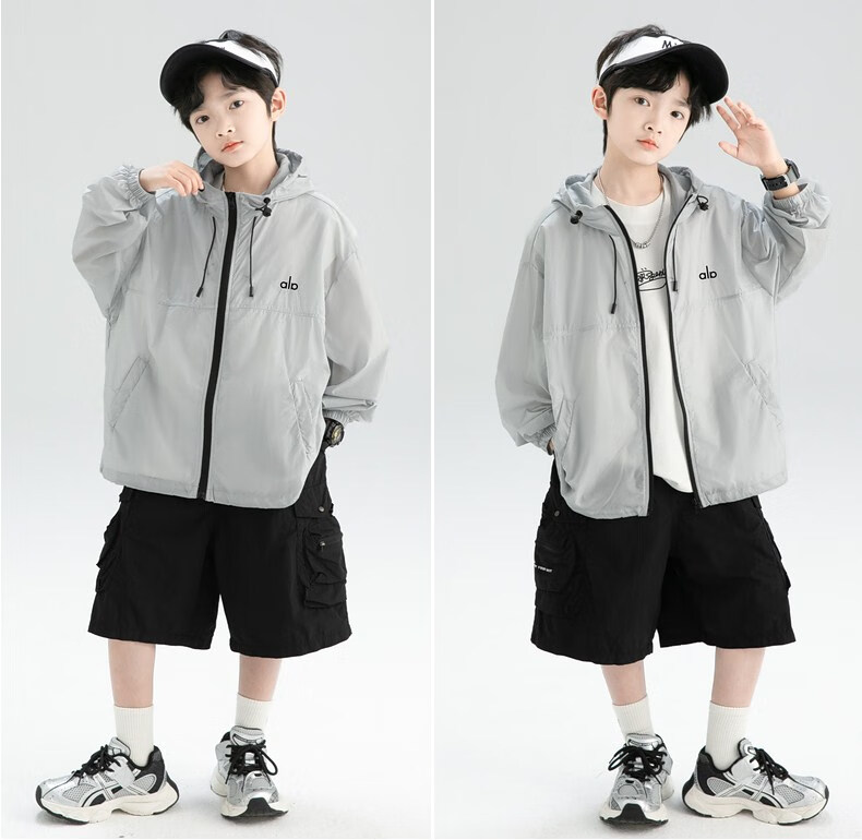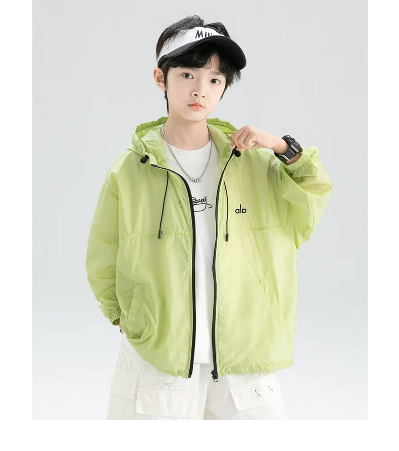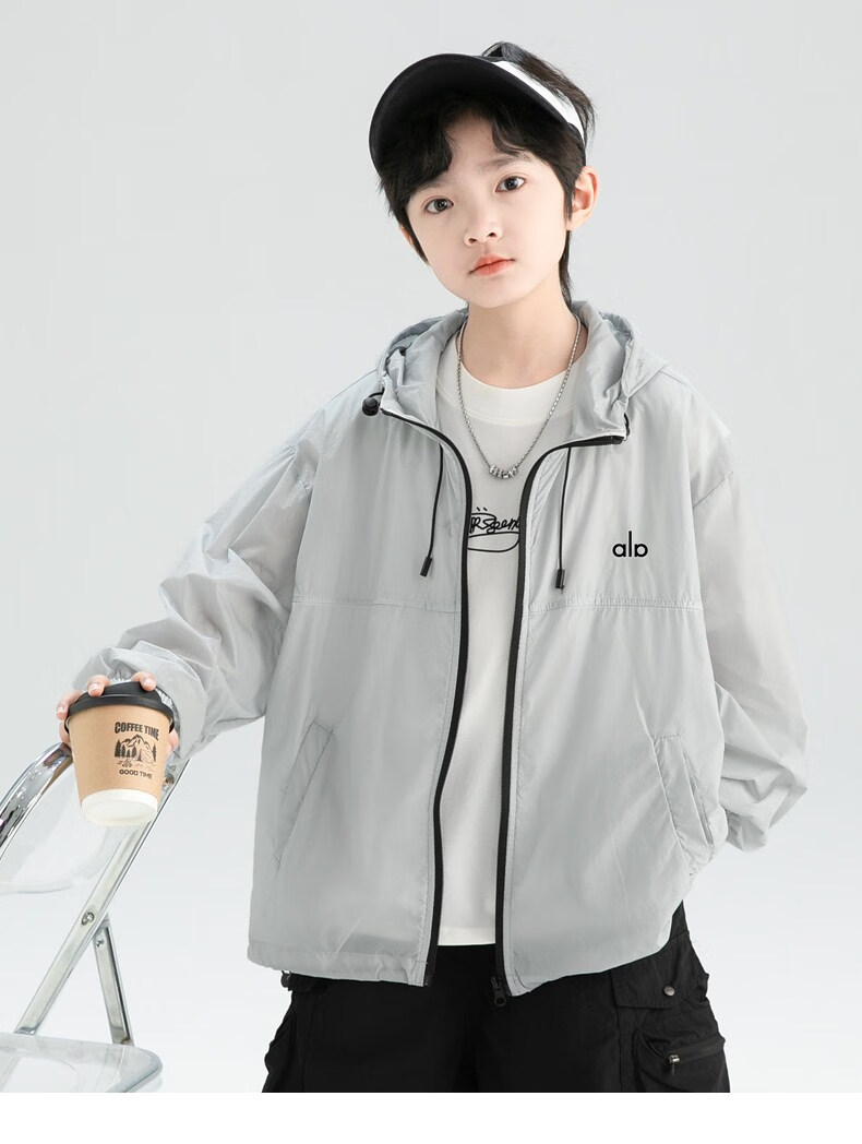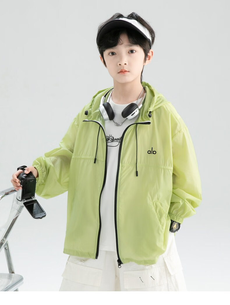 WVD American brand clothing summer thin section 2025 new children's summer sun protection clothing jacket medium and large children boys summer style trendy white 140 CM
