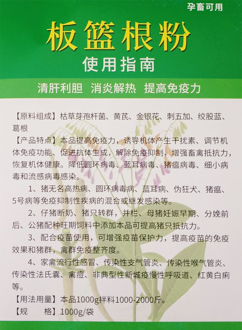 Fast selling veterinary isatis root powder for pigs, cattle, sheep, chickens, ducks, geese and pigeons, heat-clearing, detoxifying, cold and cough-resistant traditional Chinese medicine feed additives. 1 bag of 2 Jin Jin is equal to 0.5 kg. Pure traditional Chinese medicine preparation #No gift