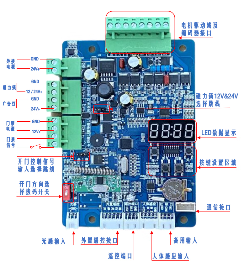 DC intelligent brushless motor controller 24V advertising door controller access control automatic door motherboard remote control 1 motherboard + 2 remote controls