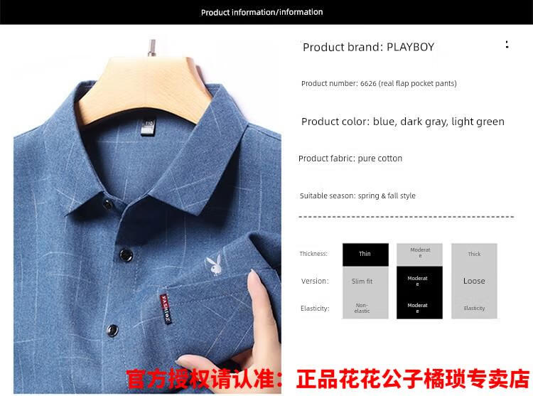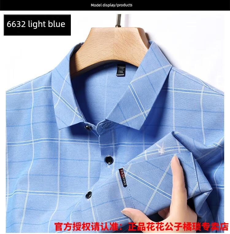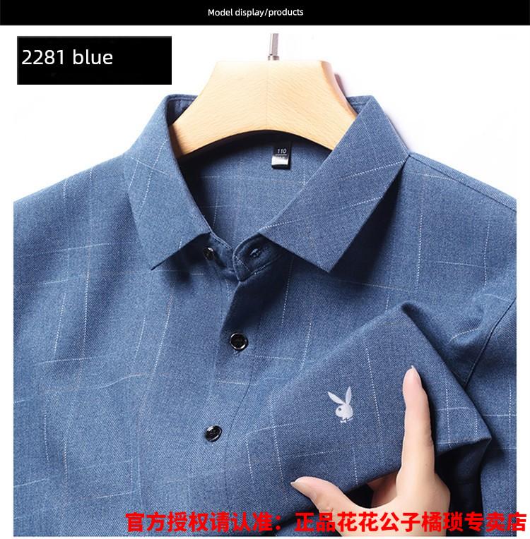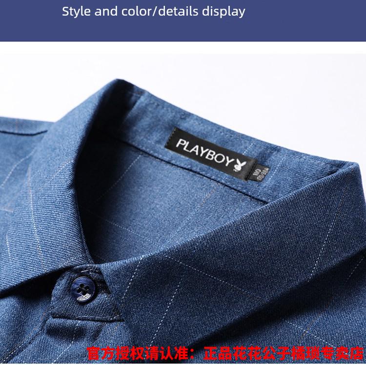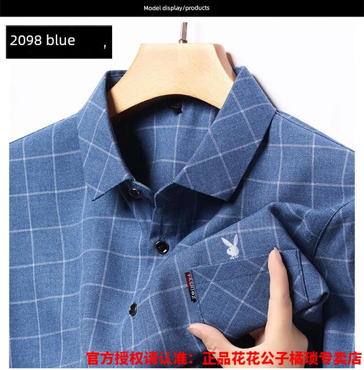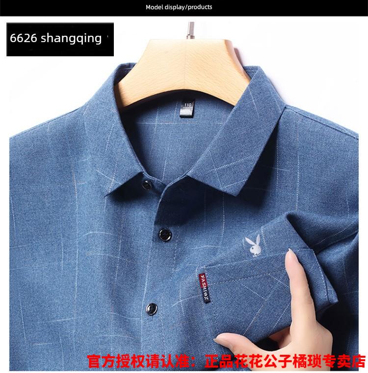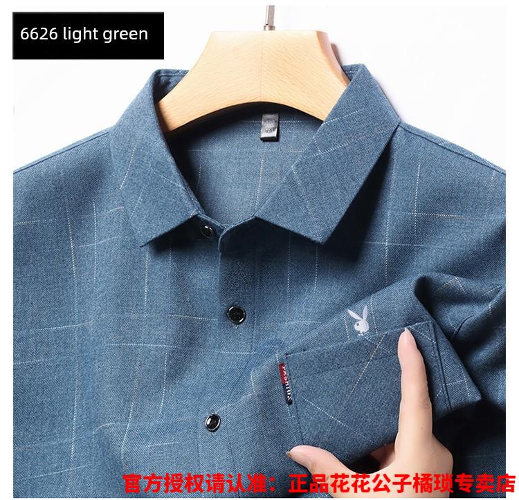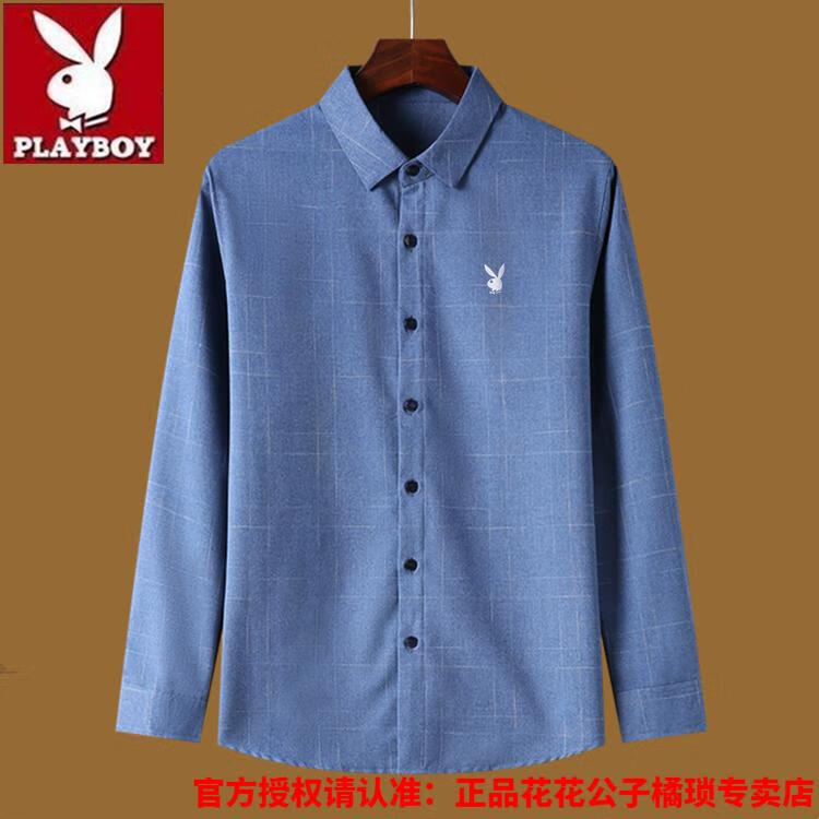 Playboy (PLAYBOY) autumn long-sleeved shirt men's pure cotton non-iron plaid fashion loose middle-aged dad classic shirt upper cyan 6626 with pockets M 165/39 recommended 100-116 Jin Jin equals 0.5 kg
