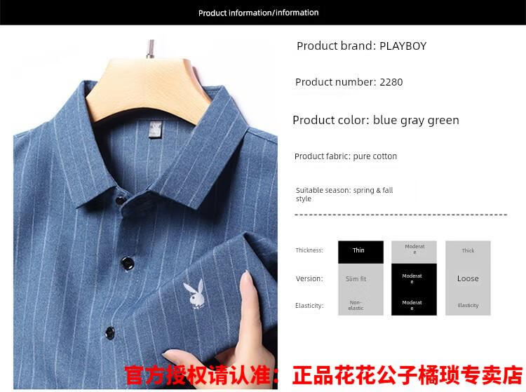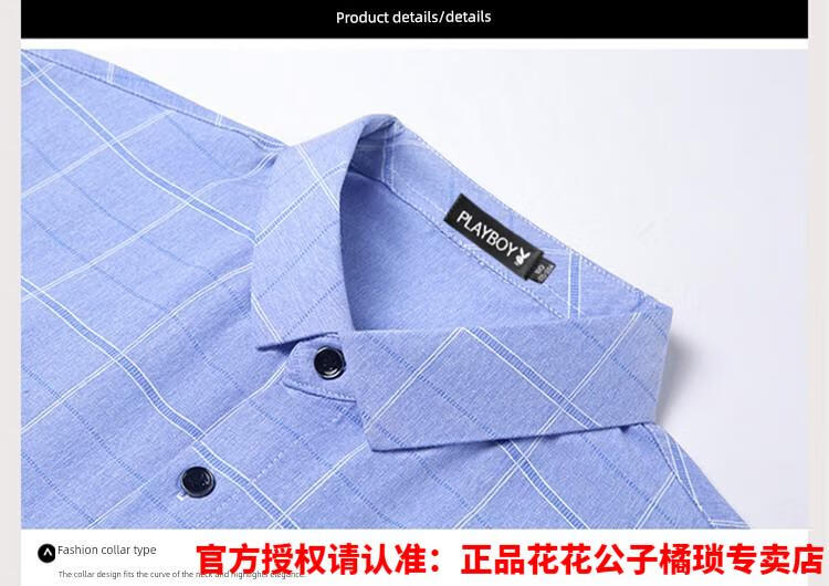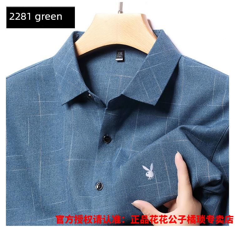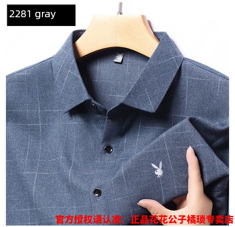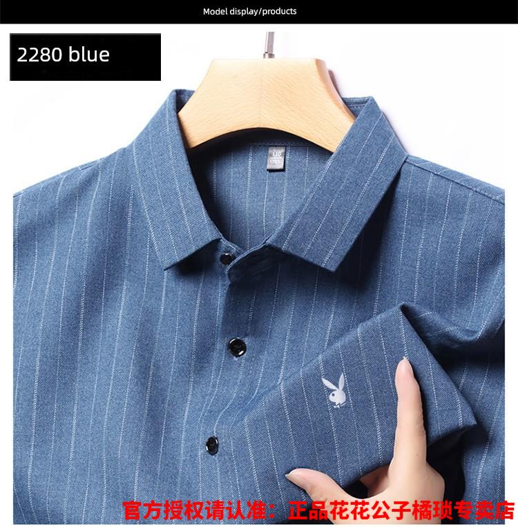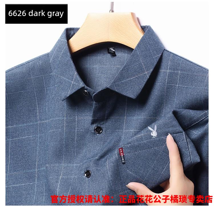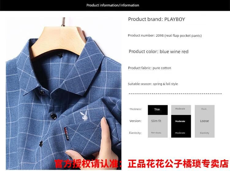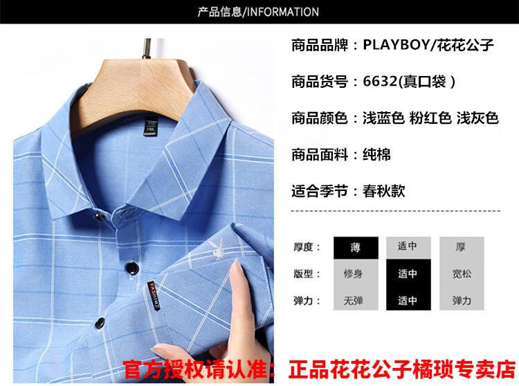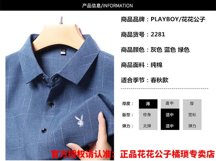 Playboy (PLAYBOY) autumn long-sleeved shirt men's pure cotton non-iron plaid fashion loose middle-aged dad classic shirt upper cyan 6626 with pockets M 165/39 recommended 100-116 Jin Jin equals 0.5 kg