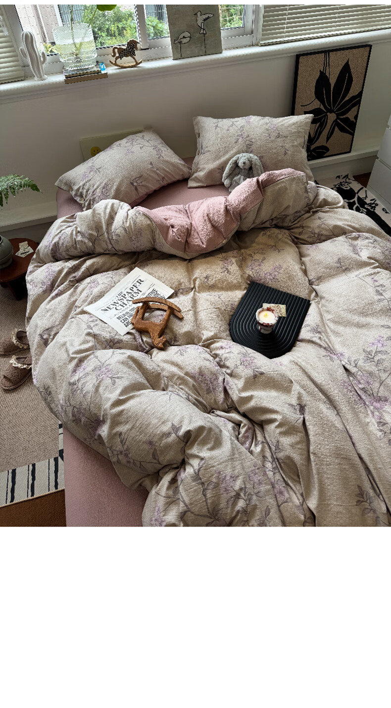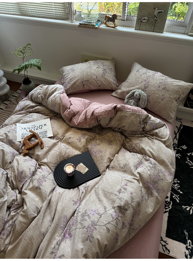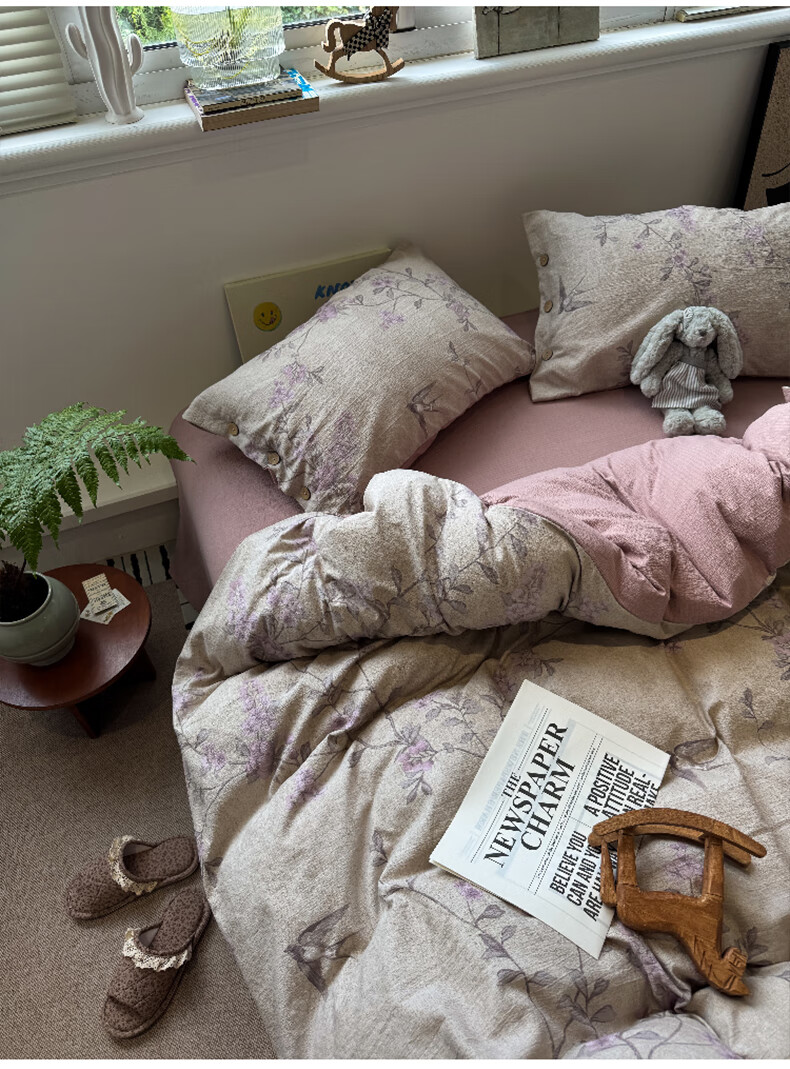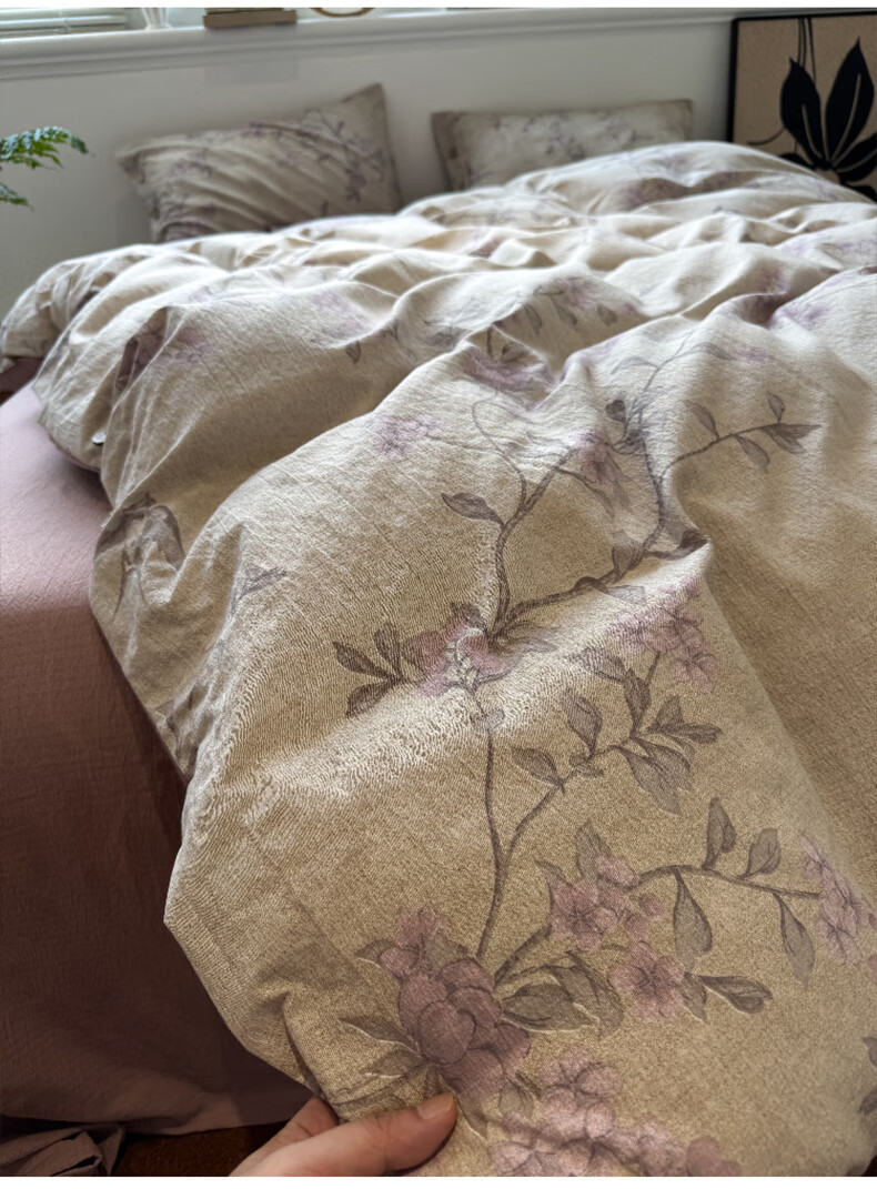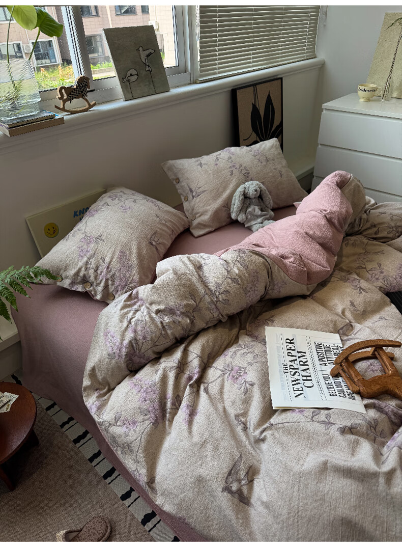 Autumn and winter thickened American retro style original linen retro button style bed four-piece set 2025 new bed sheet and quilt cover Original linen retro-midsummer 1.8m fitted sheet four-piece quilt cover 200x230