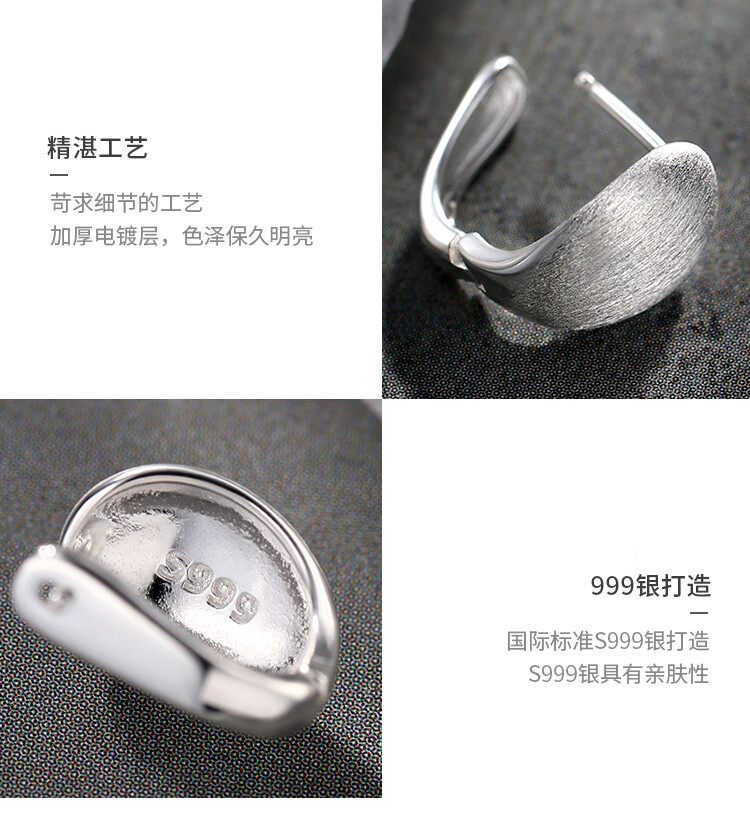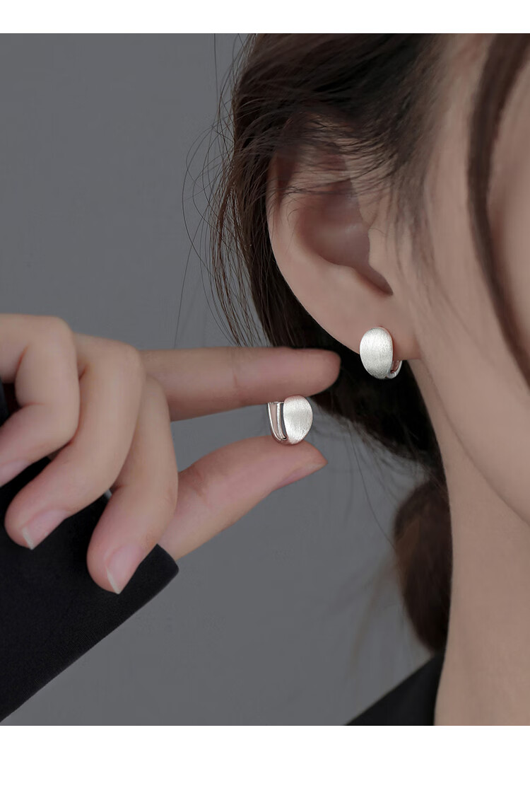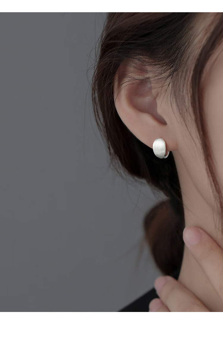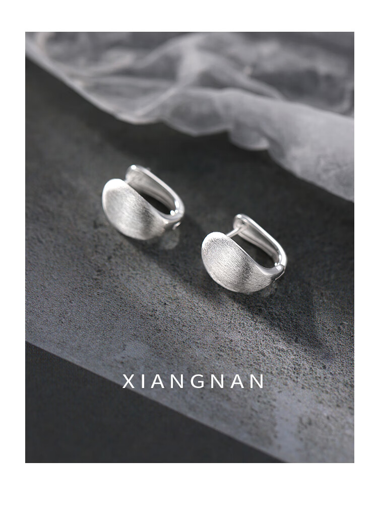 Xiangnan 999 sterling silver brushed earrings niche 2025 new earrings versatile high-end girl gift temperament earrings 999 silver brushed curved earrings (pair)