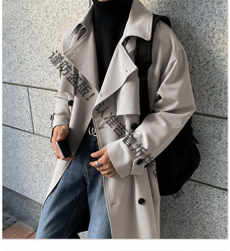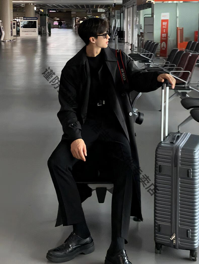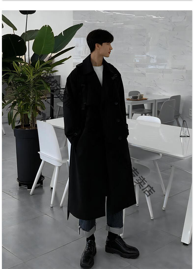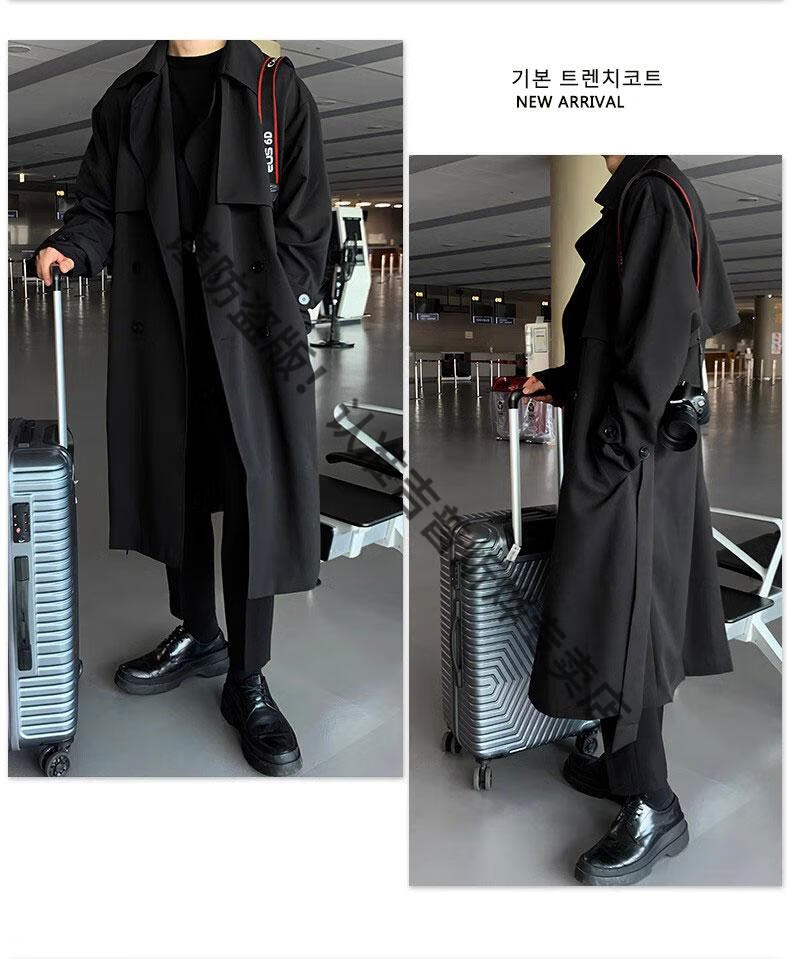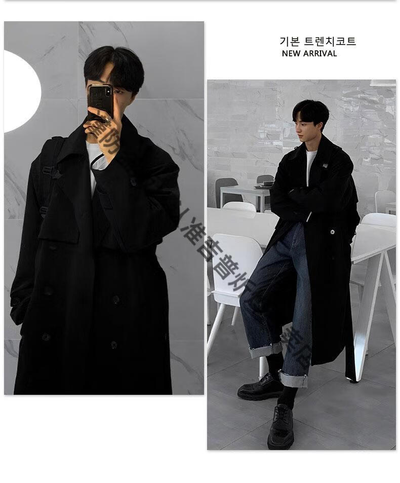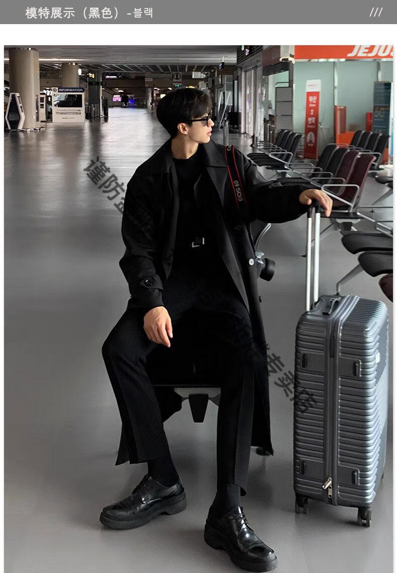 JEEP Spring and Autumn Style Mid-Length Windbreaker Men's Korean Style Loose Trendy Handsome Over-the-Knee Coat Double-Breasted Trench Jacket Black Cotton Thickened M 105-125Jin Jin equals 0.5 kg