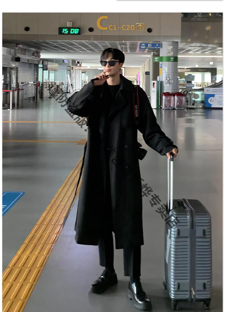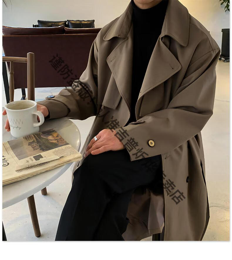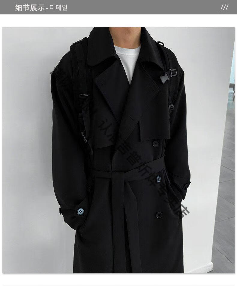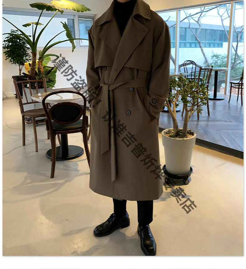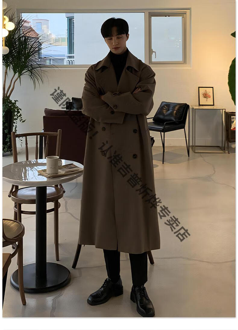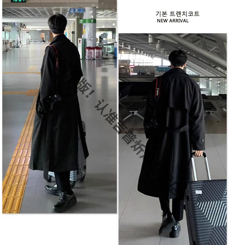 JEEP Spring and Autumn Style Mid-Length Windbreaker Men's Korean Style Loose Trendy Handsome Over-the-Knee Coat Double-Breasted Trench Jacket Black Cotton Thickened M 105-125Jin Jin equals 0.5 kg