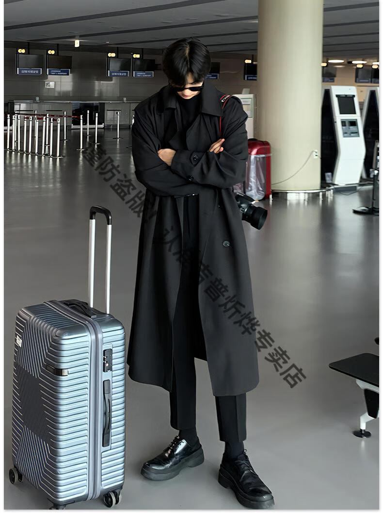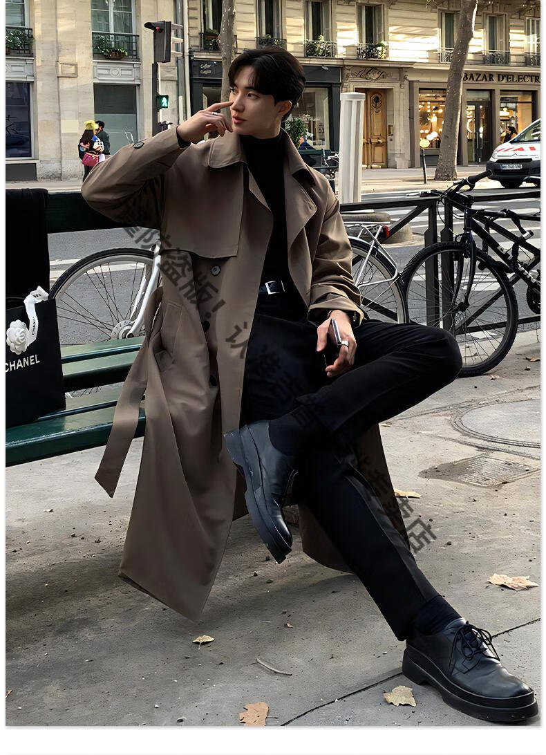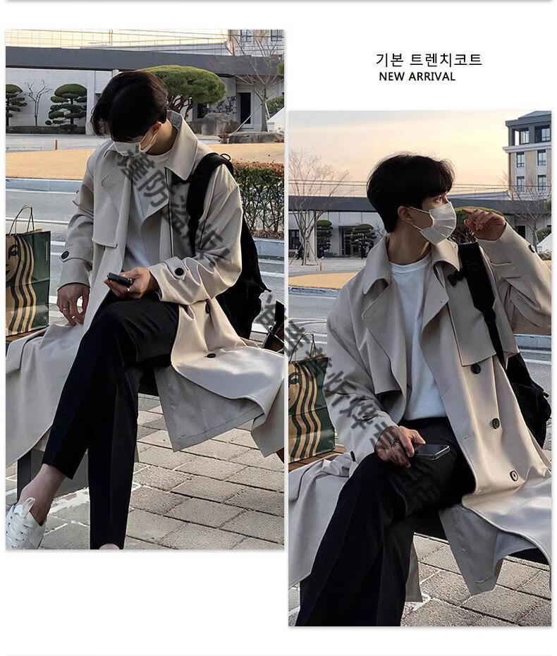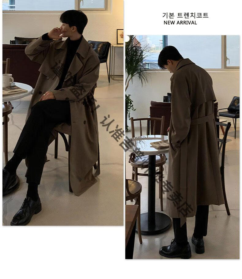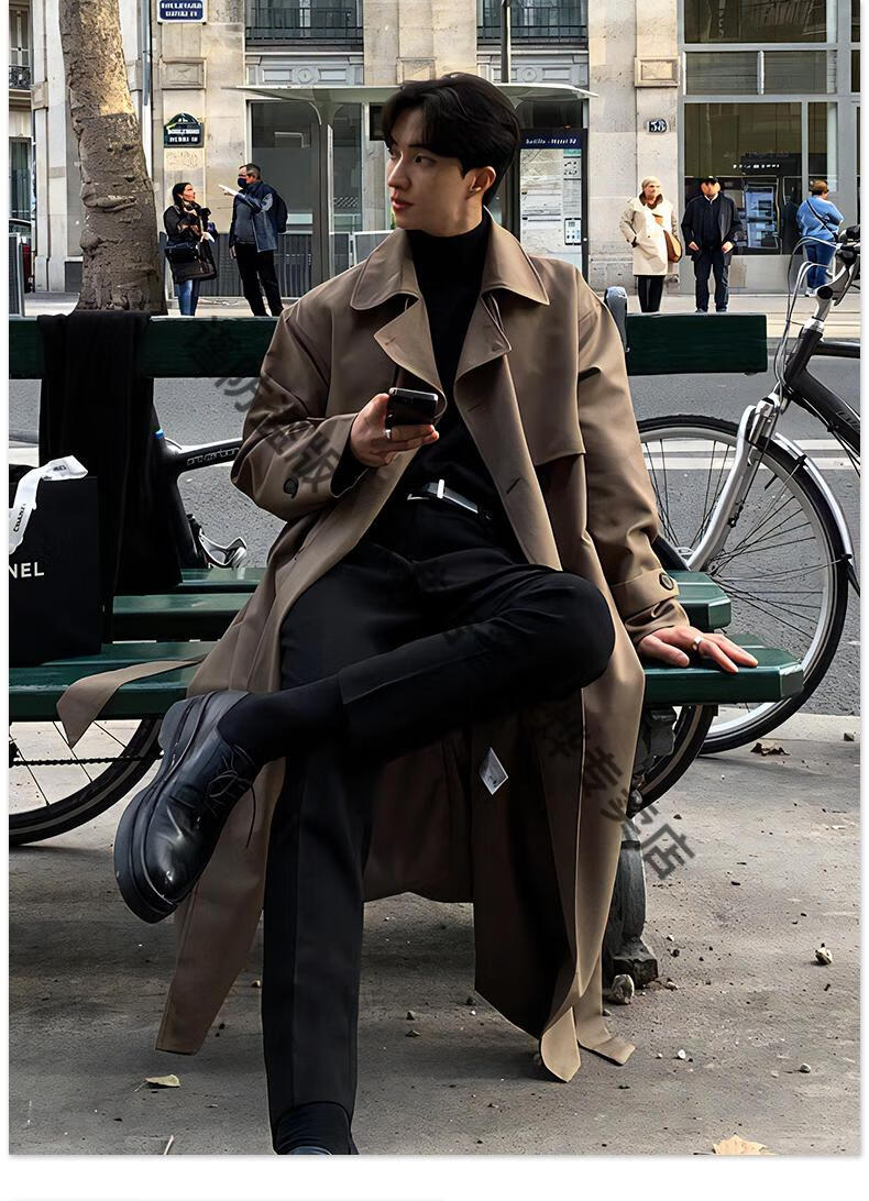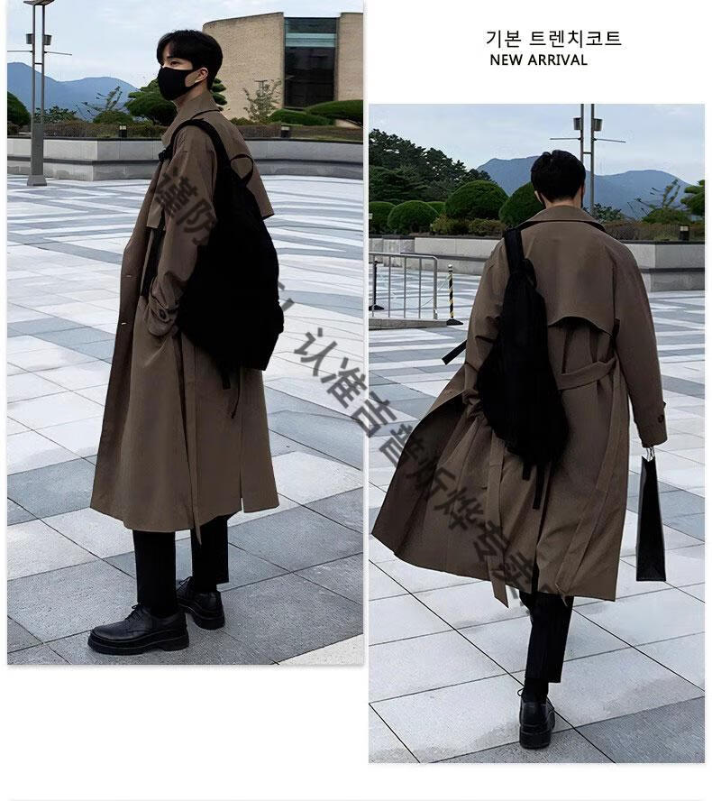 JEEP Spring and Autumn Style Mid-Length Windbreaker Men's Korean Style Loose Trendy Handsome Over-the-Knee Coat Double-Breasted Trench Jacket Black Cotton Thickened M 105-125Jin Jin equals 0.5 kg