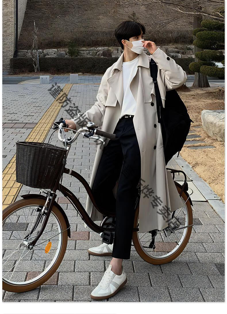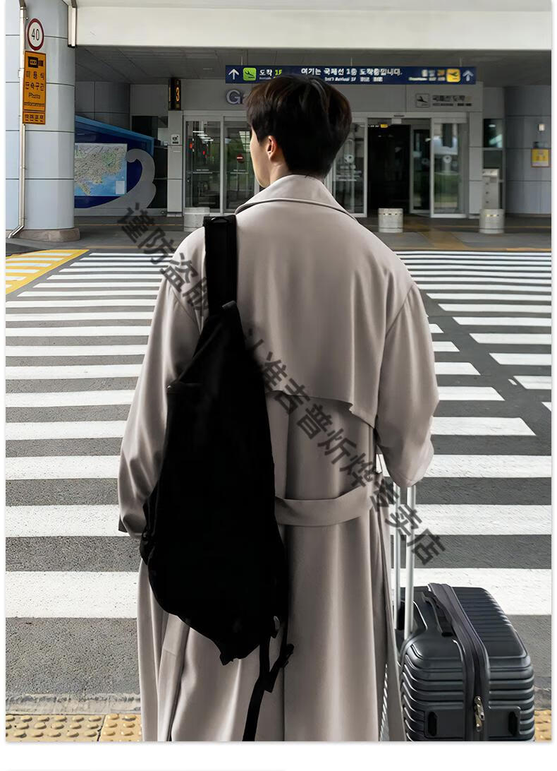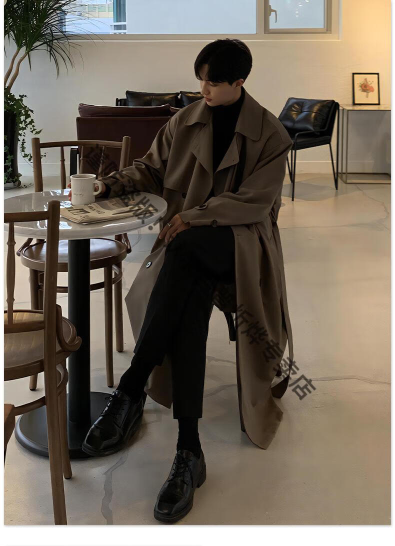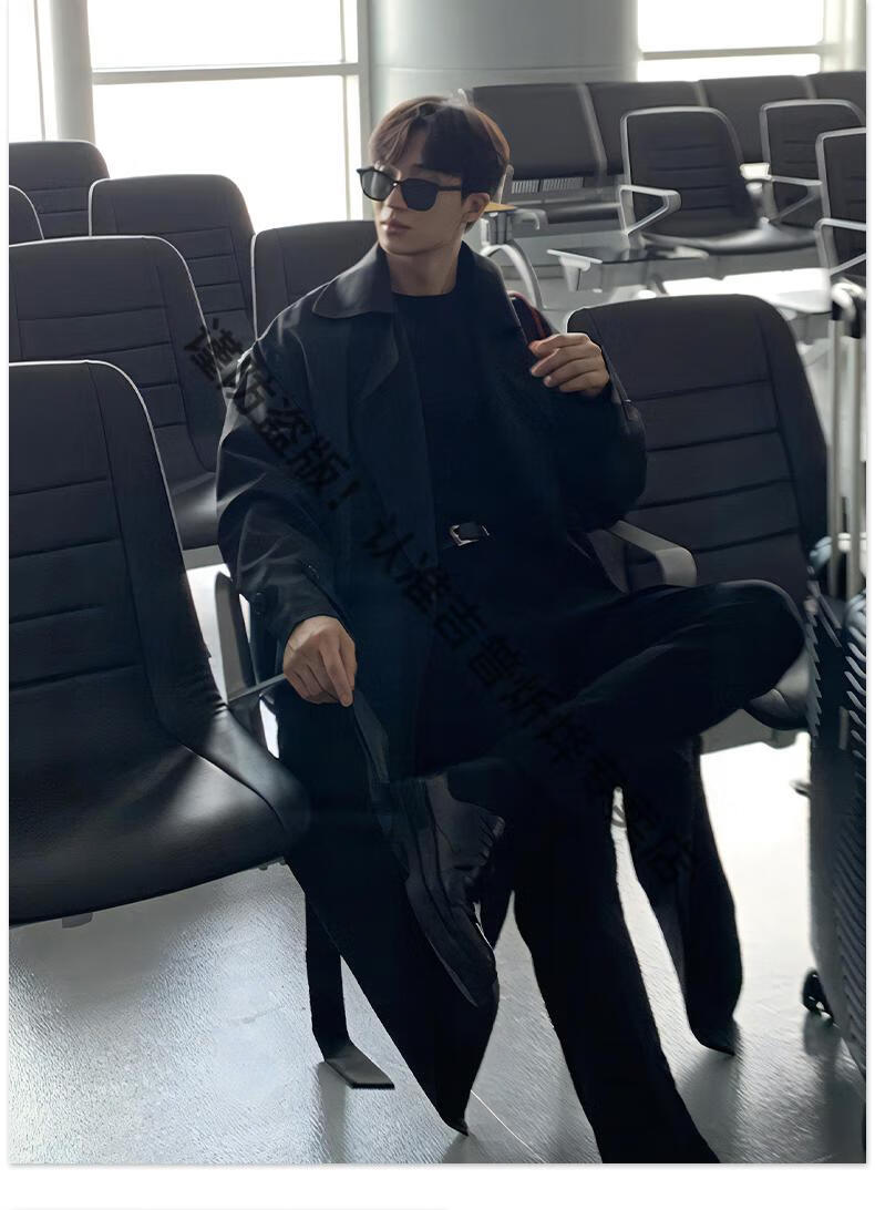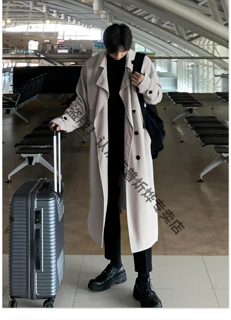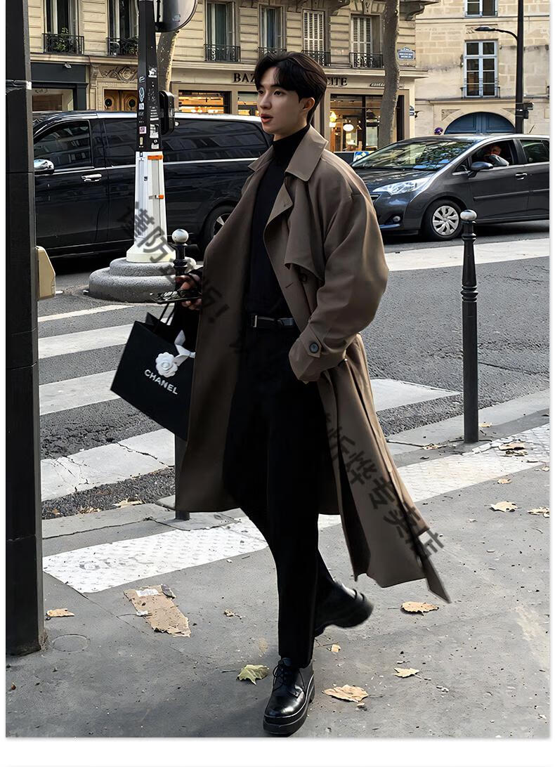 JEEP Spring and Autumn Style Mid-Length Windbreaker Men's Korean Style Loose Trendy Handsome Over-the-Knee Coat Double-Breasted Trench Jacket Black Cotton Thickened M 105-125Jin Jin equals 0.5 kg
