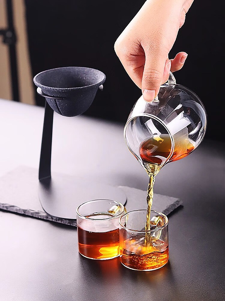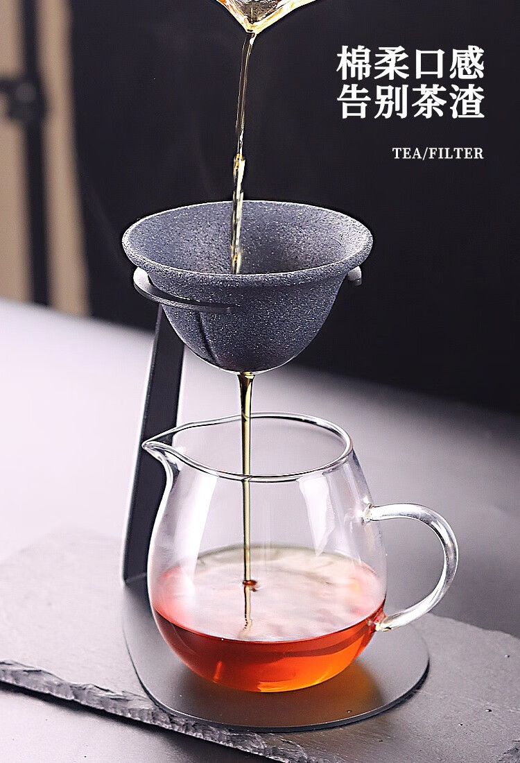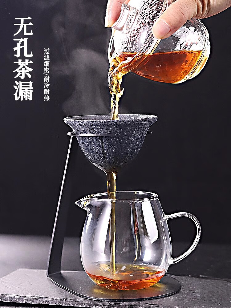 Aseblarm ore non-porous tea drain household high-end tea filter tea filter mesh water separation with creative bracket high-end Chinese style two-piece set non-porous tea drain + bracket