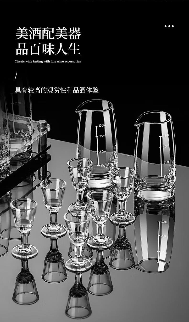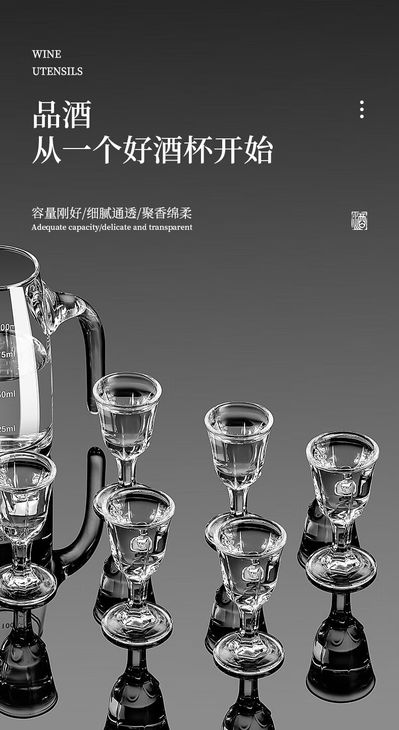 Thickened glass white wine cup set household wine divider with scale wine pot small wine cup wine cup wine set 100ml seven-character pot*6+bullet cup*6