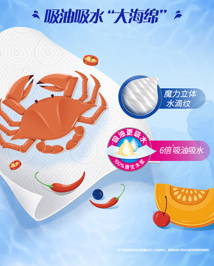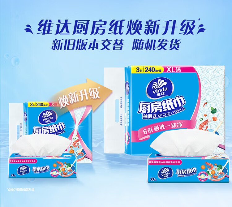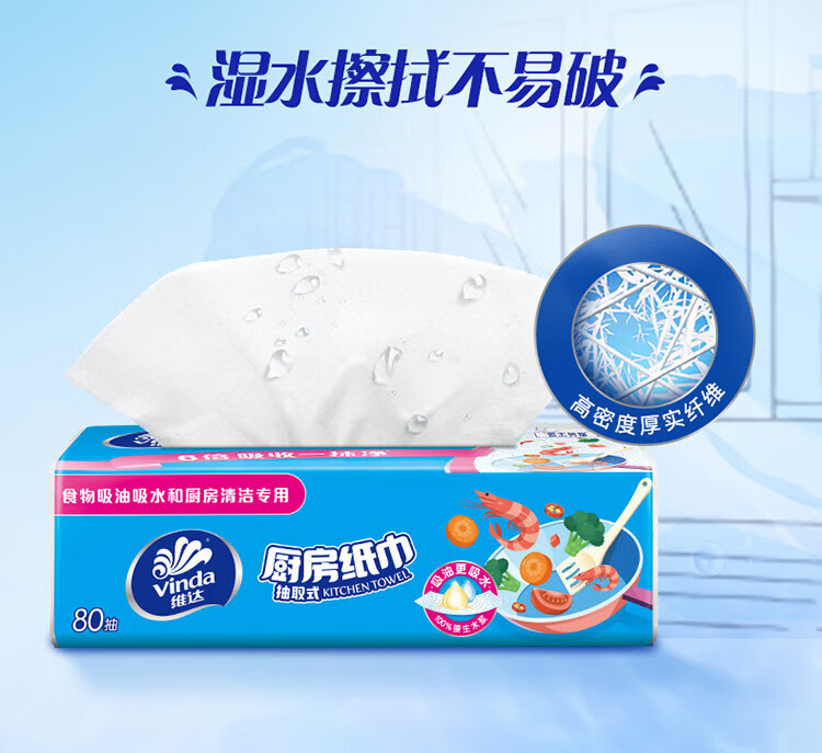 维达厨房抽纸巾80抽/包 吸油吸水厨房纸 厚实强韧 2层 80抽*12包 (整箱)