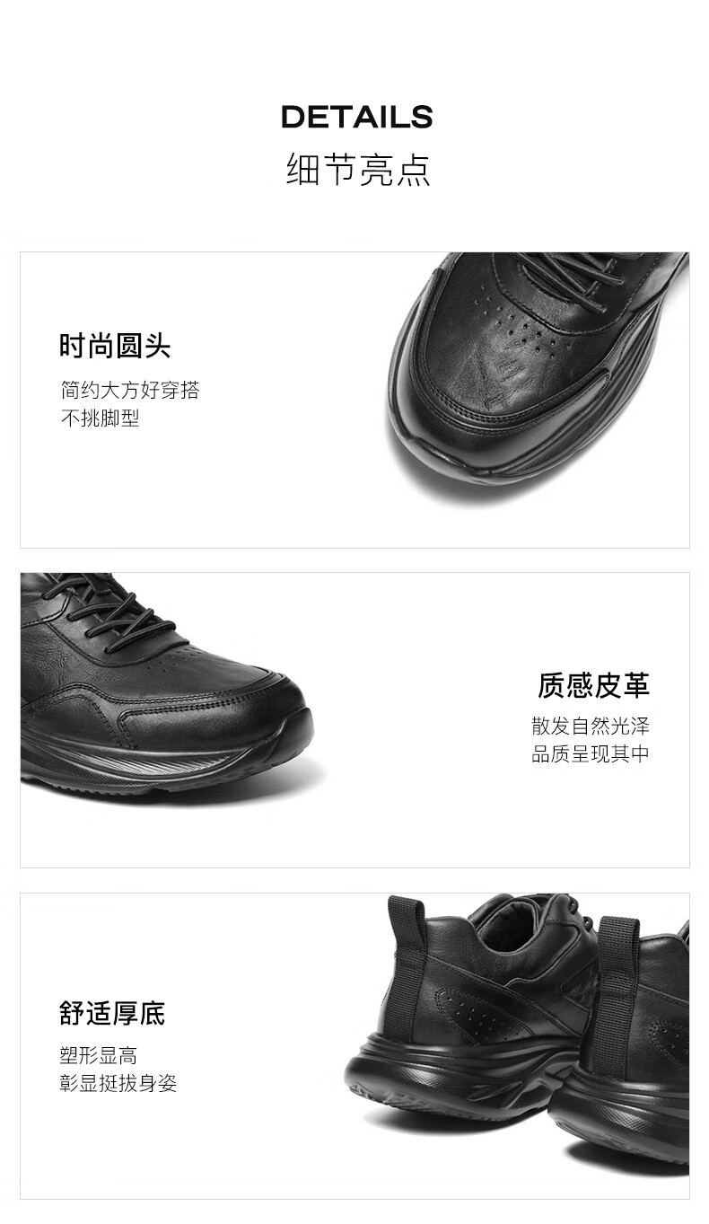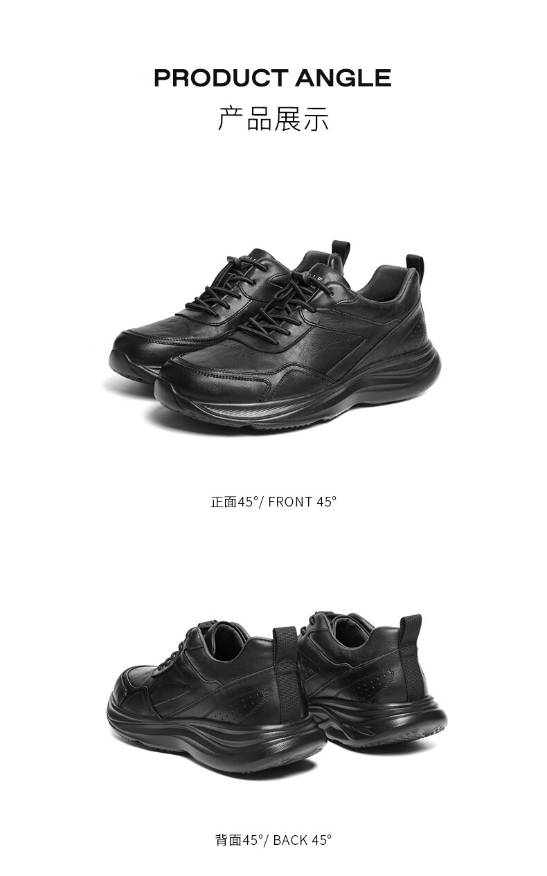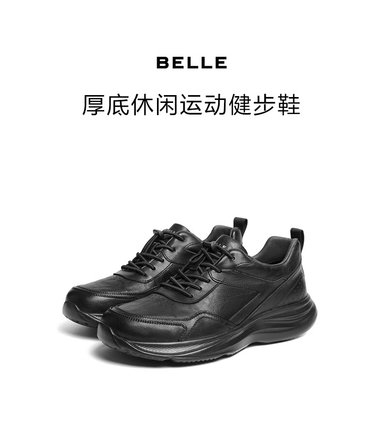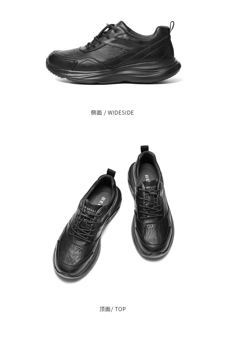 Belle thick-soled walking shoes for men 25 autumn new shopping mall same style cow leather casual sports shoes 8XC01CM5 black 42 (260mm)
