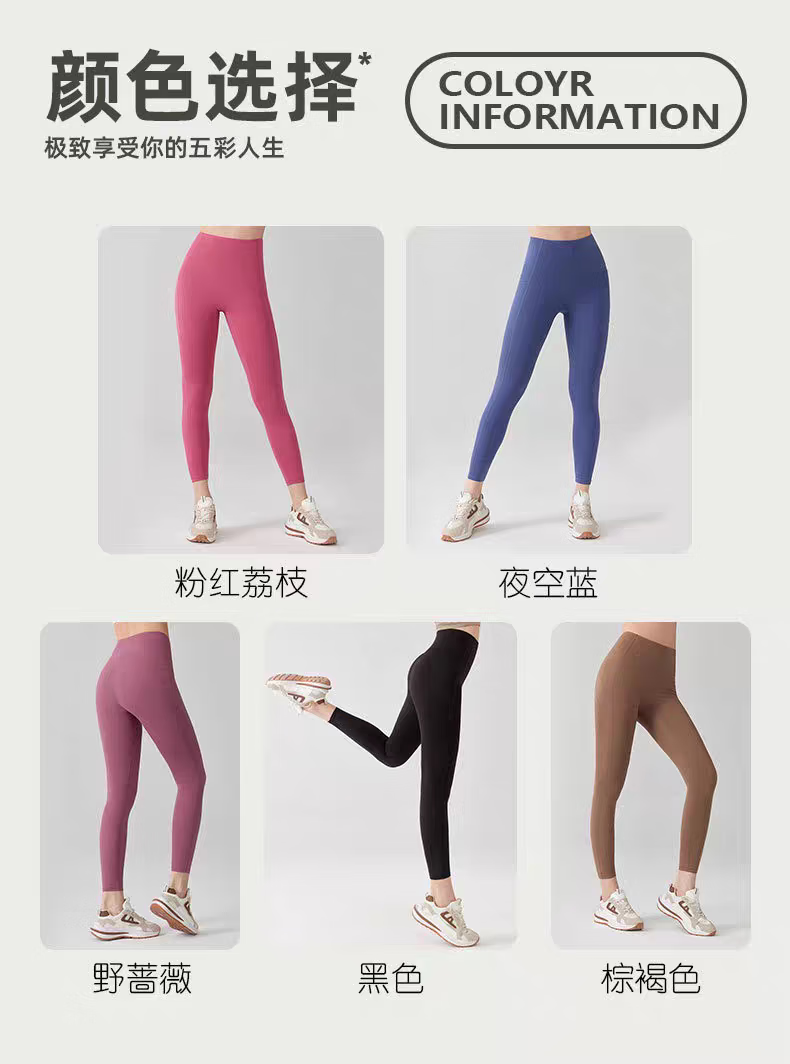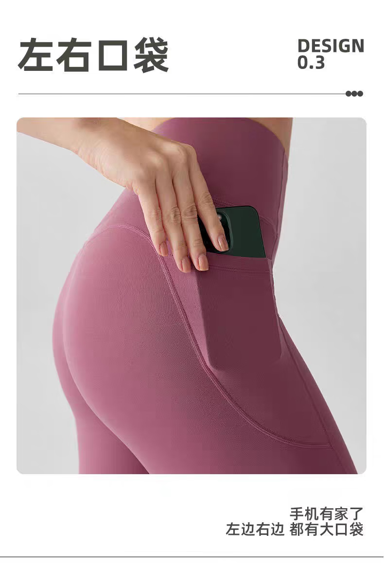 Nude pants with pockets for women, high waist, hip lift, no embarrassment, quick-drying fitness pants for outer wear, running, Pilates, Pink Lychee XL