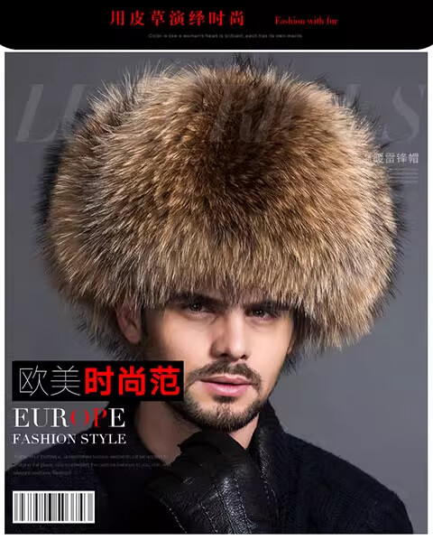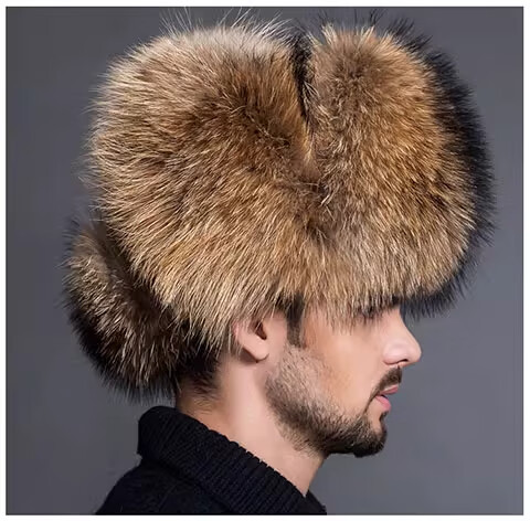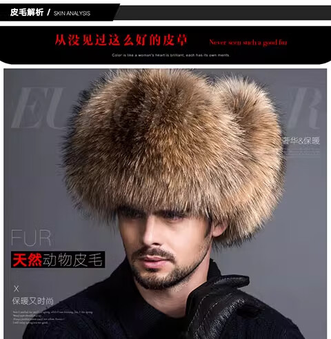 Yinghui fur hat men's winter middle-aged and elderly genuine leather ear protection hat Northeastern men's thickened elderly fox fur real fur hat raccoon hair original color M/56-58CM or above head circumference