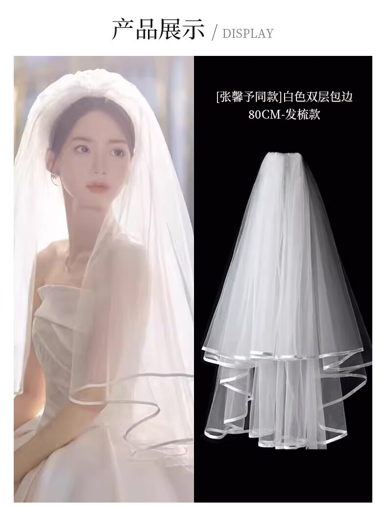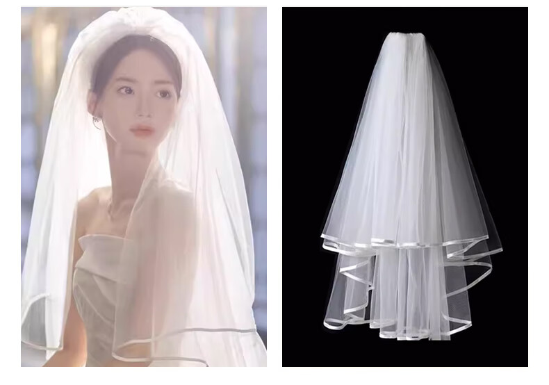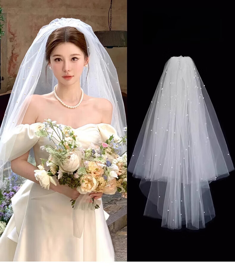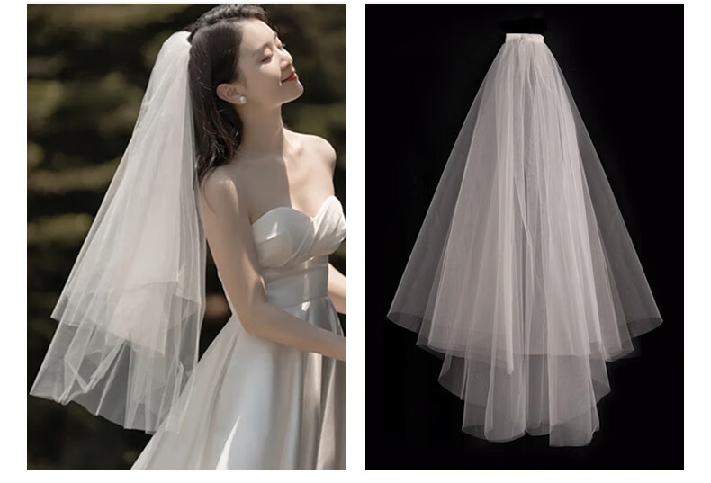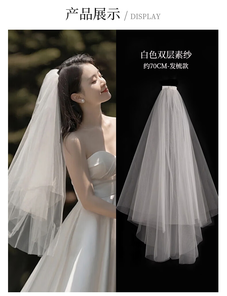 Bhiodha quality veil bride main wedding dress wedding certificate marriage proposal engagement super fairy fluffy headwear photo studio photo shoot 60cm white double layer plain yarn about 70cm - lighter and more elegant