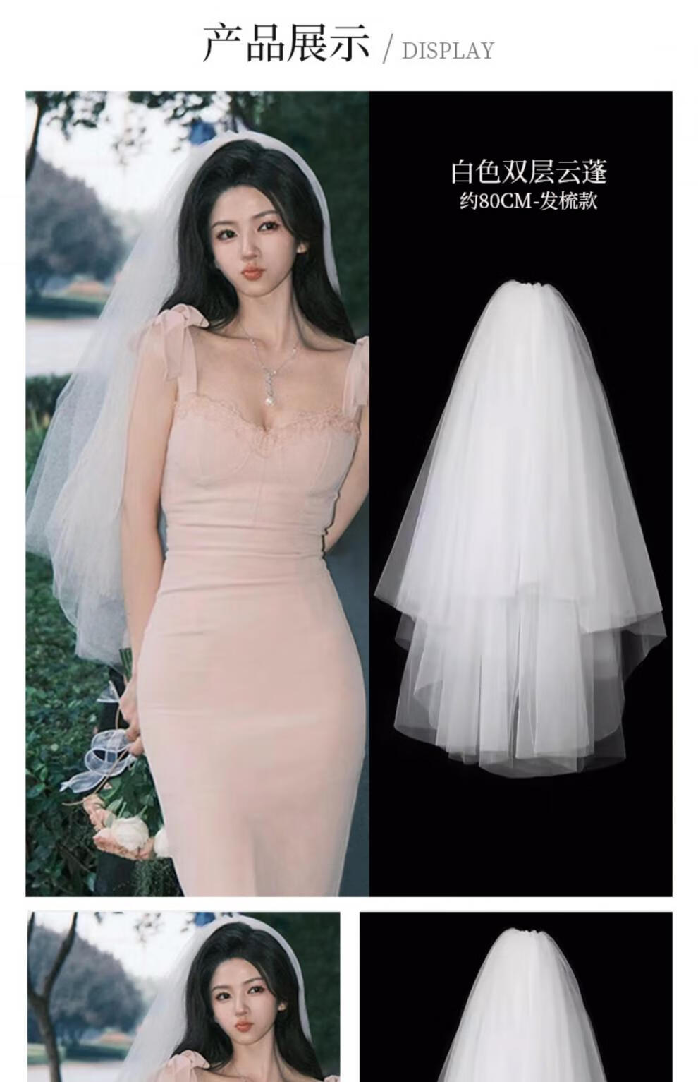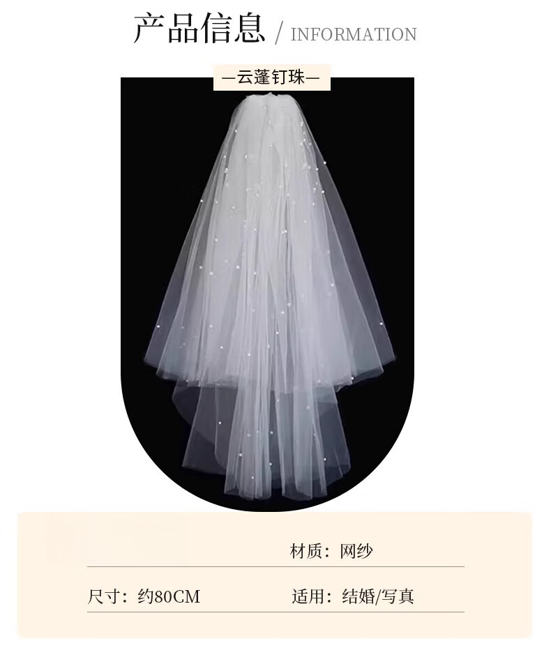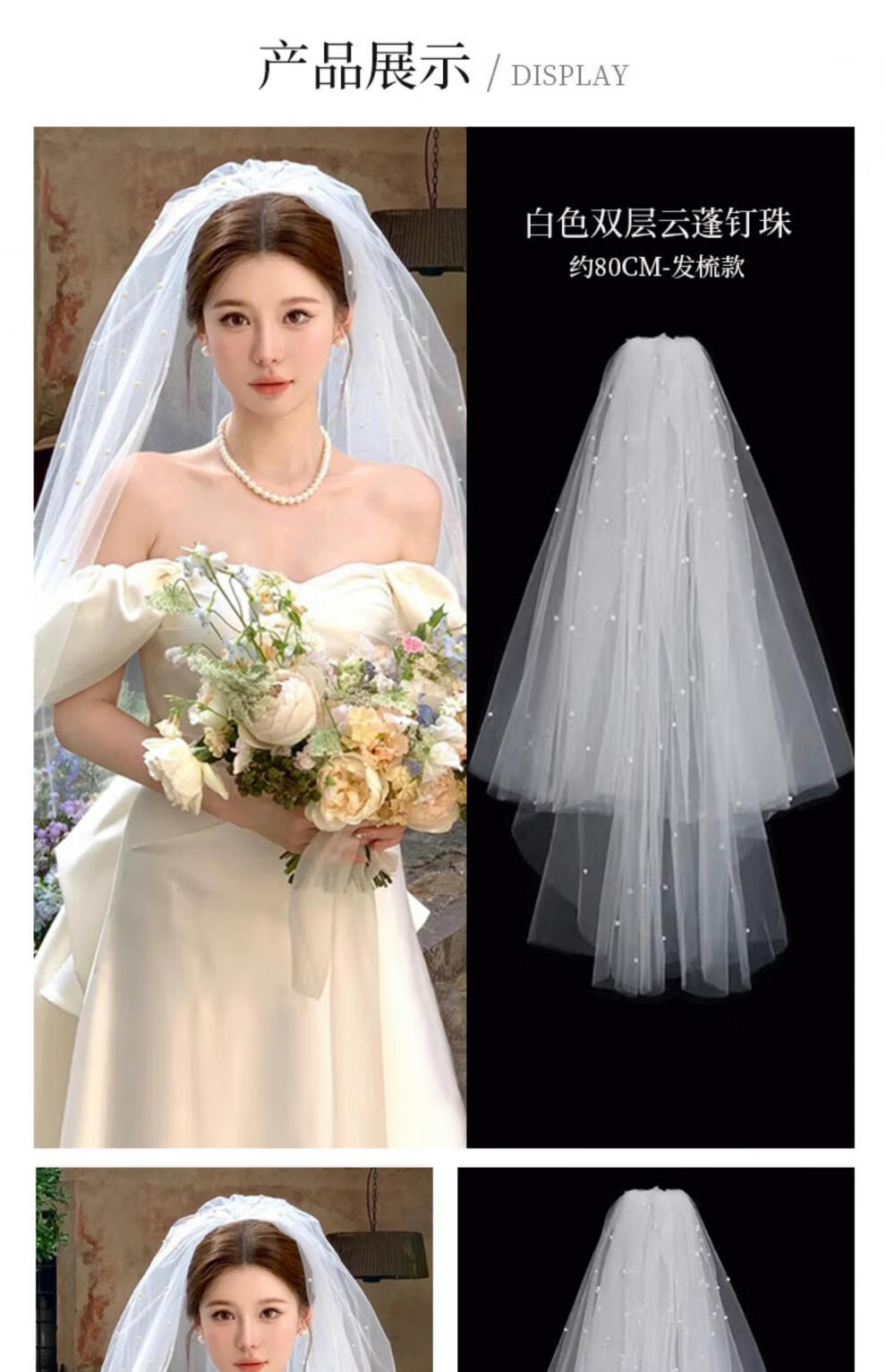 Bhiodha quality veil bride main wedding dress wedding certificate marriage proposal engagement super fairy fluffy headwear photo studio photo shoot 60cm white double layer plain yarn about 70cm - lighter and more elegant