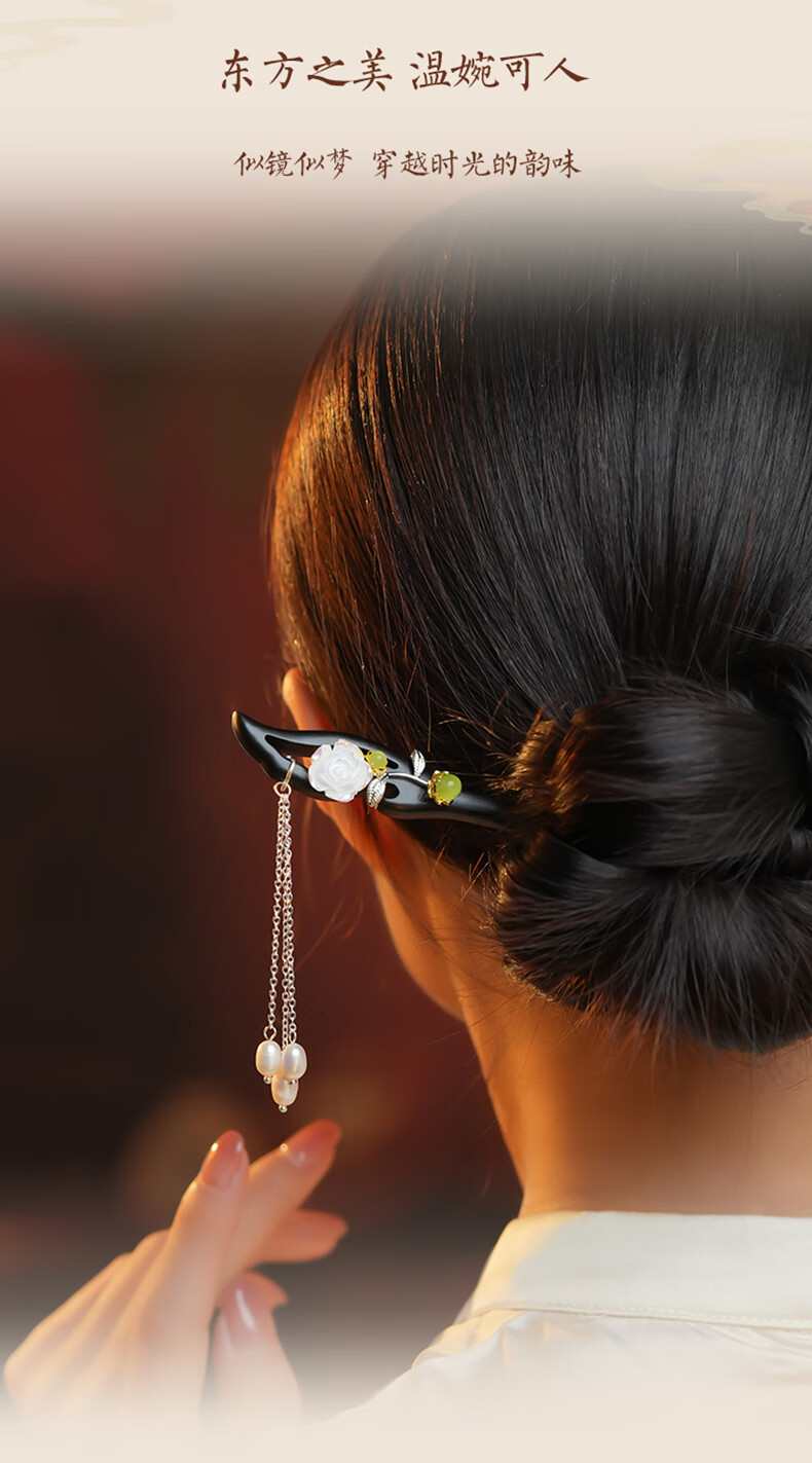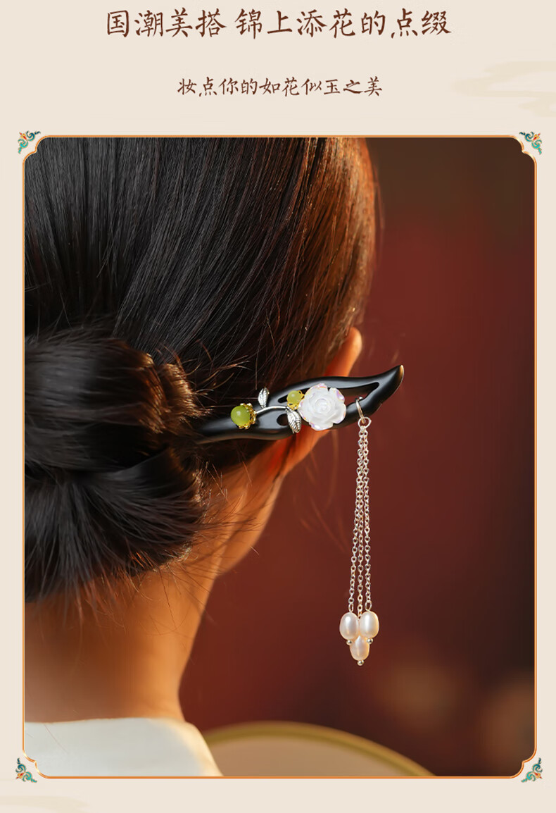 Huatianchu pearl hairpin with tassels, ancient style, feminine Hanfu, new Chinese style wooden hairpin, temperament goddess Chunxue - send <Wanhuizhou>