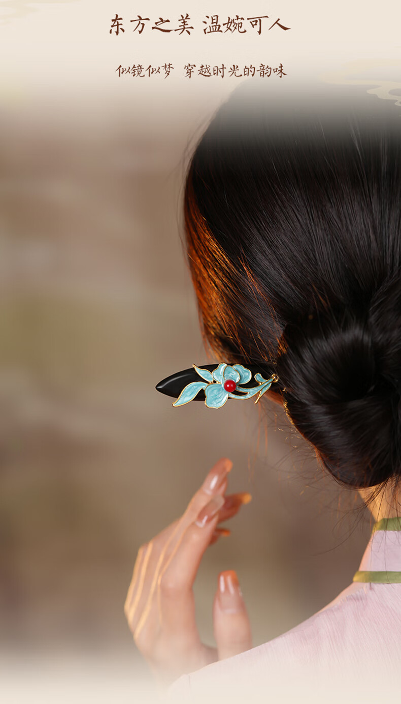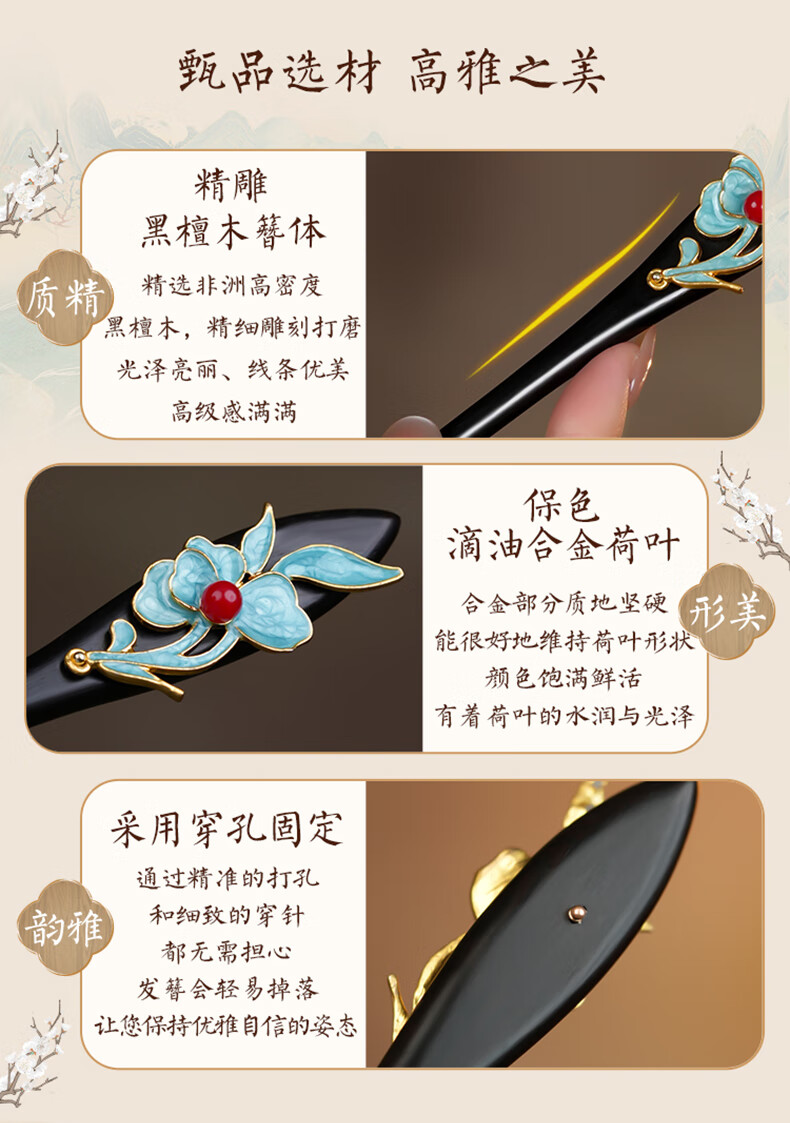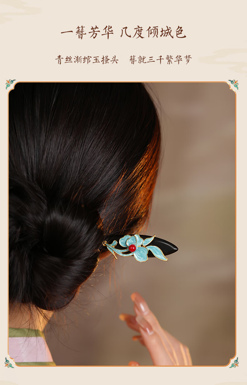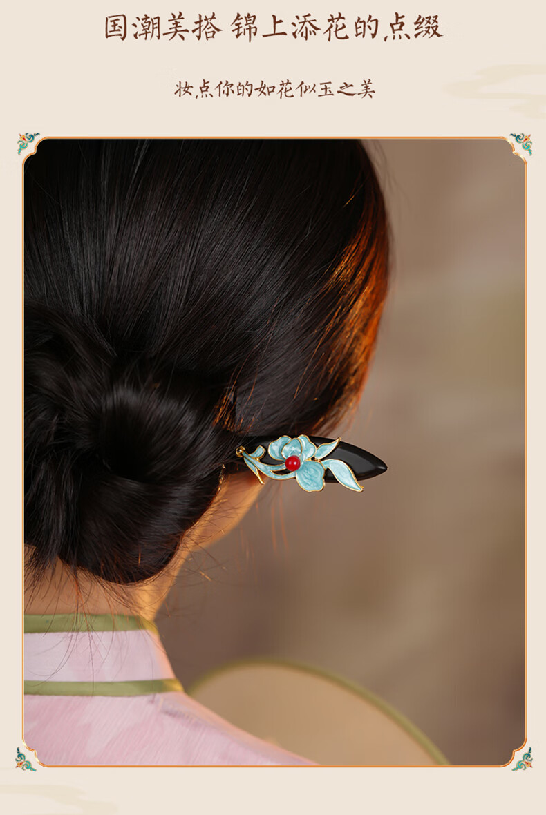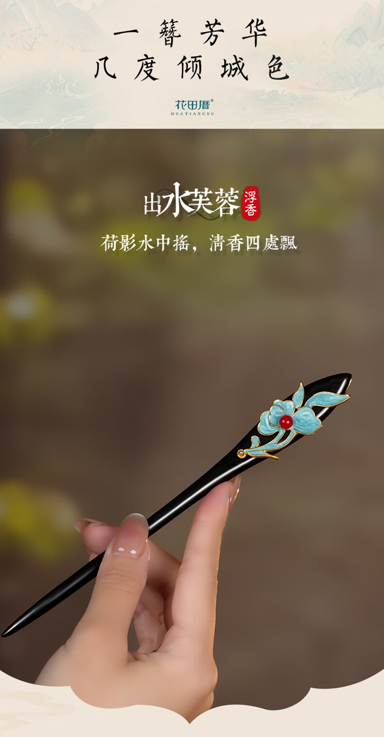 Huatiancuo lotus sandalwood hairpin new Chinese style cool feeling niche blue Xiuhe cheongsam headdress national style hairpin bun hair national color heavenly fragrance floating fragrance one free <Back to the boat in the evening>