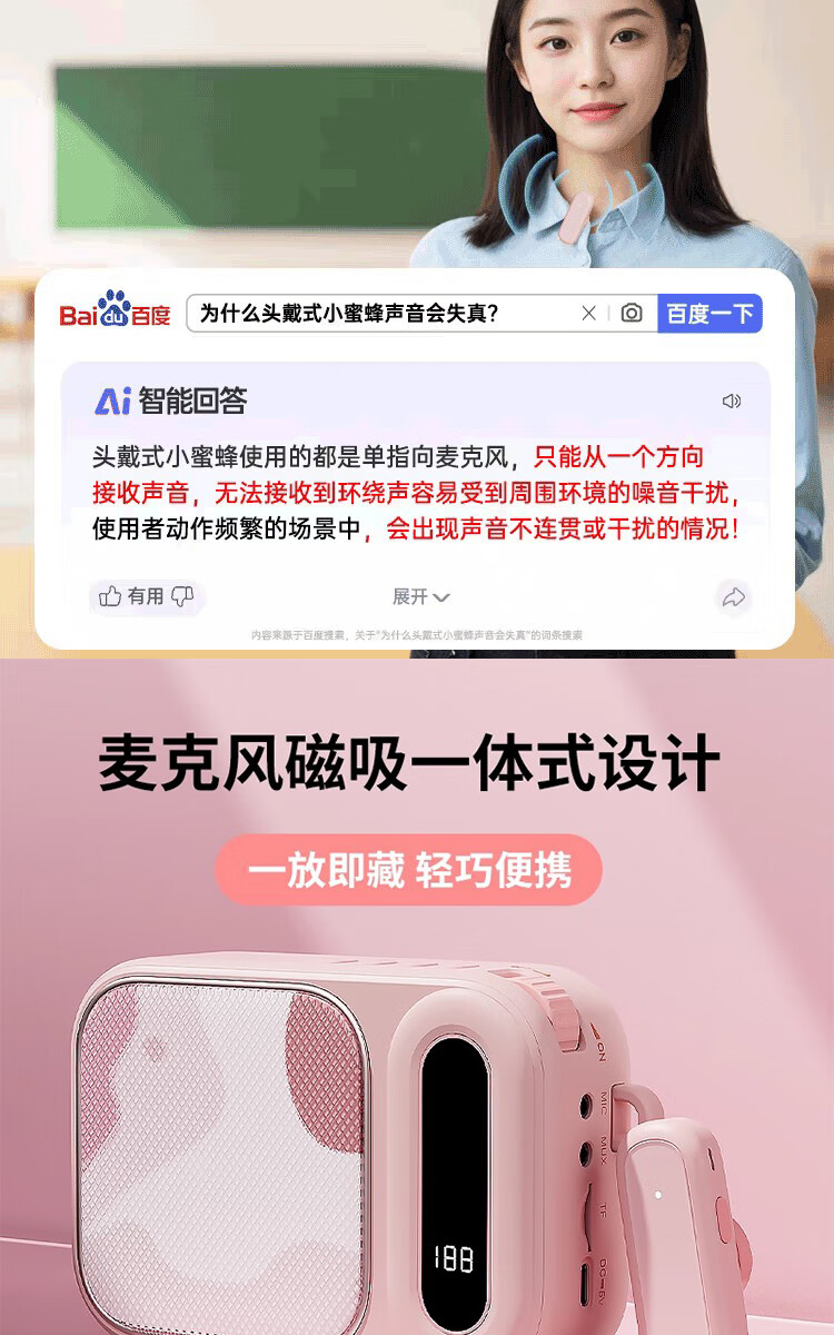Jingwu Wireless Lavalier Mai Little Bee Amplifier Magnetic Microphone Speaker Special Audio for Teachers and Tour Guides All-in-one Flagship Rouyue White Audio/Wireless Amplification/Super Long Battery Life Super Large Volume Brand New Mini Collar Mai