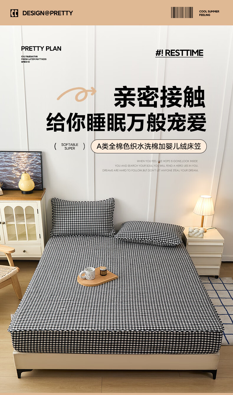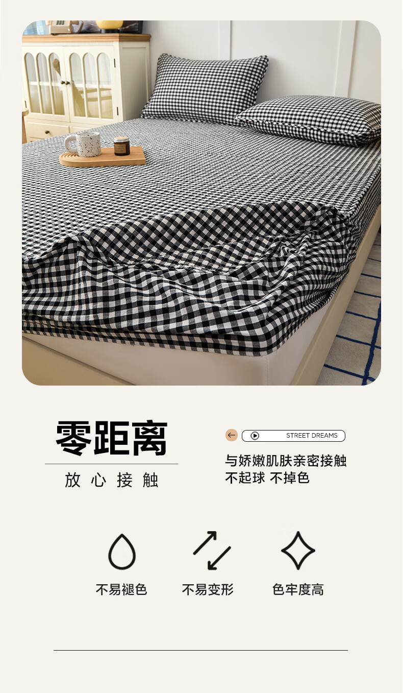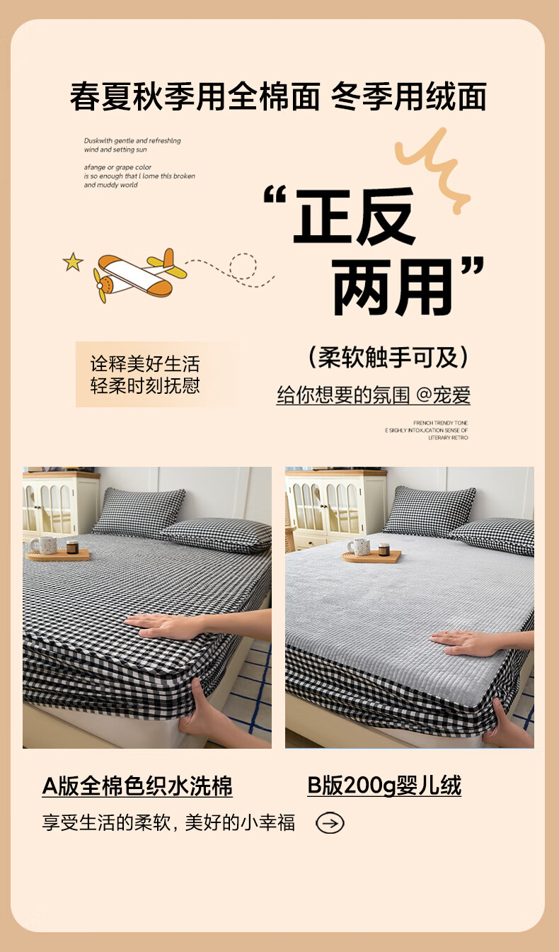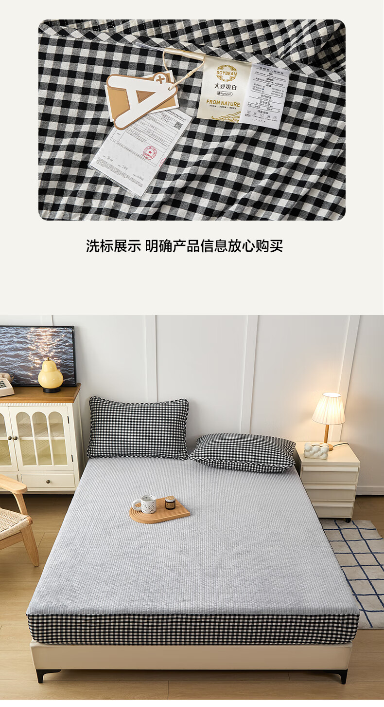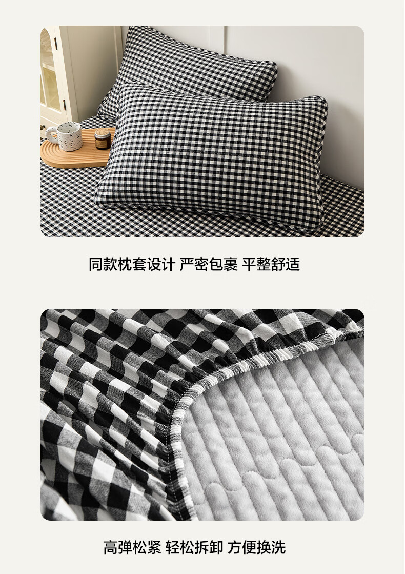 Xiyouyou 2025 new type A cotton yarn-dyed washed cotton plus baby velvet double-sided fitted sheet student dormitory single product warm velvet-black and white checkered 90*200cm single fitted sheet
