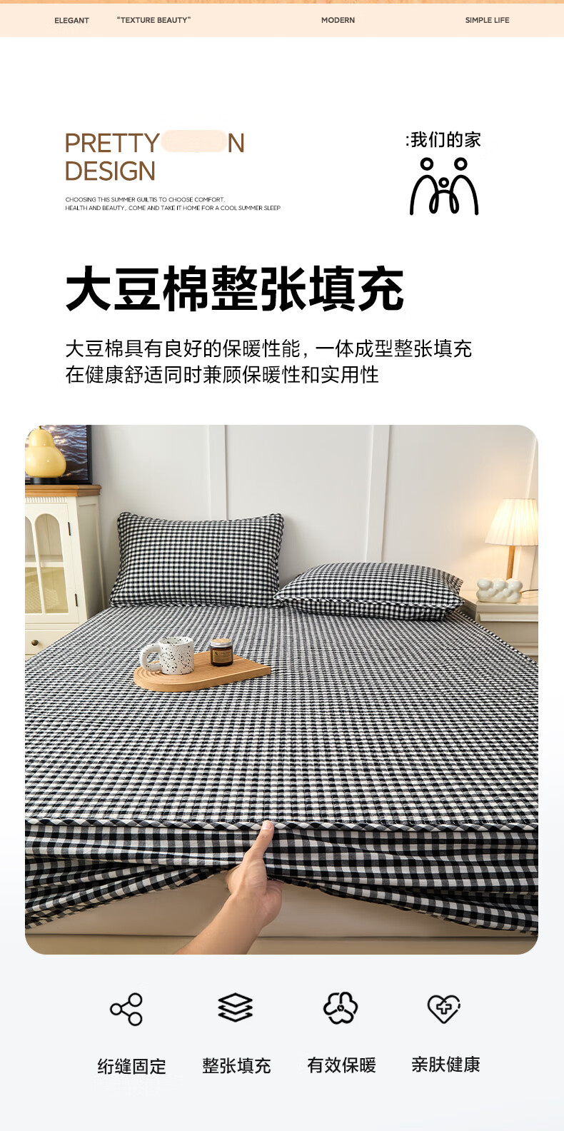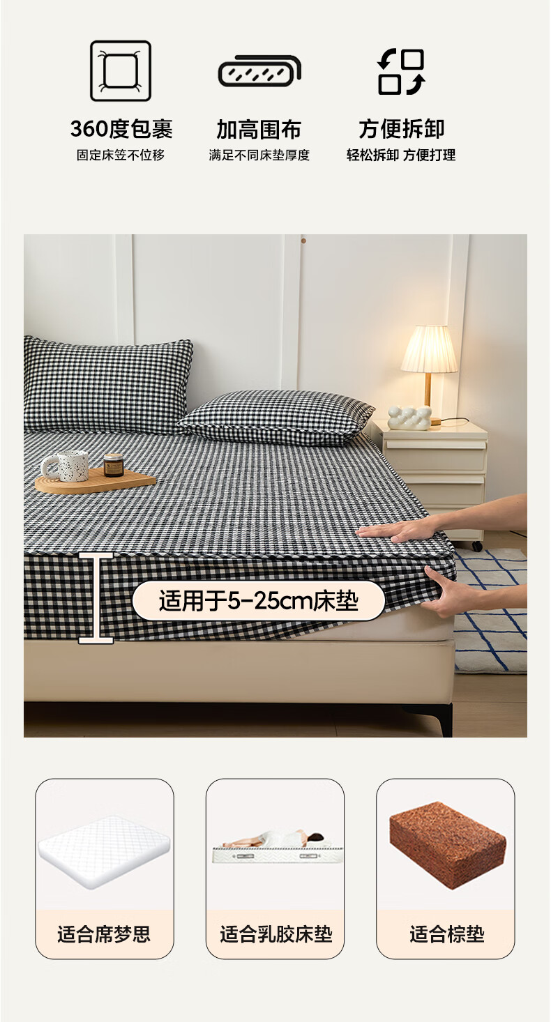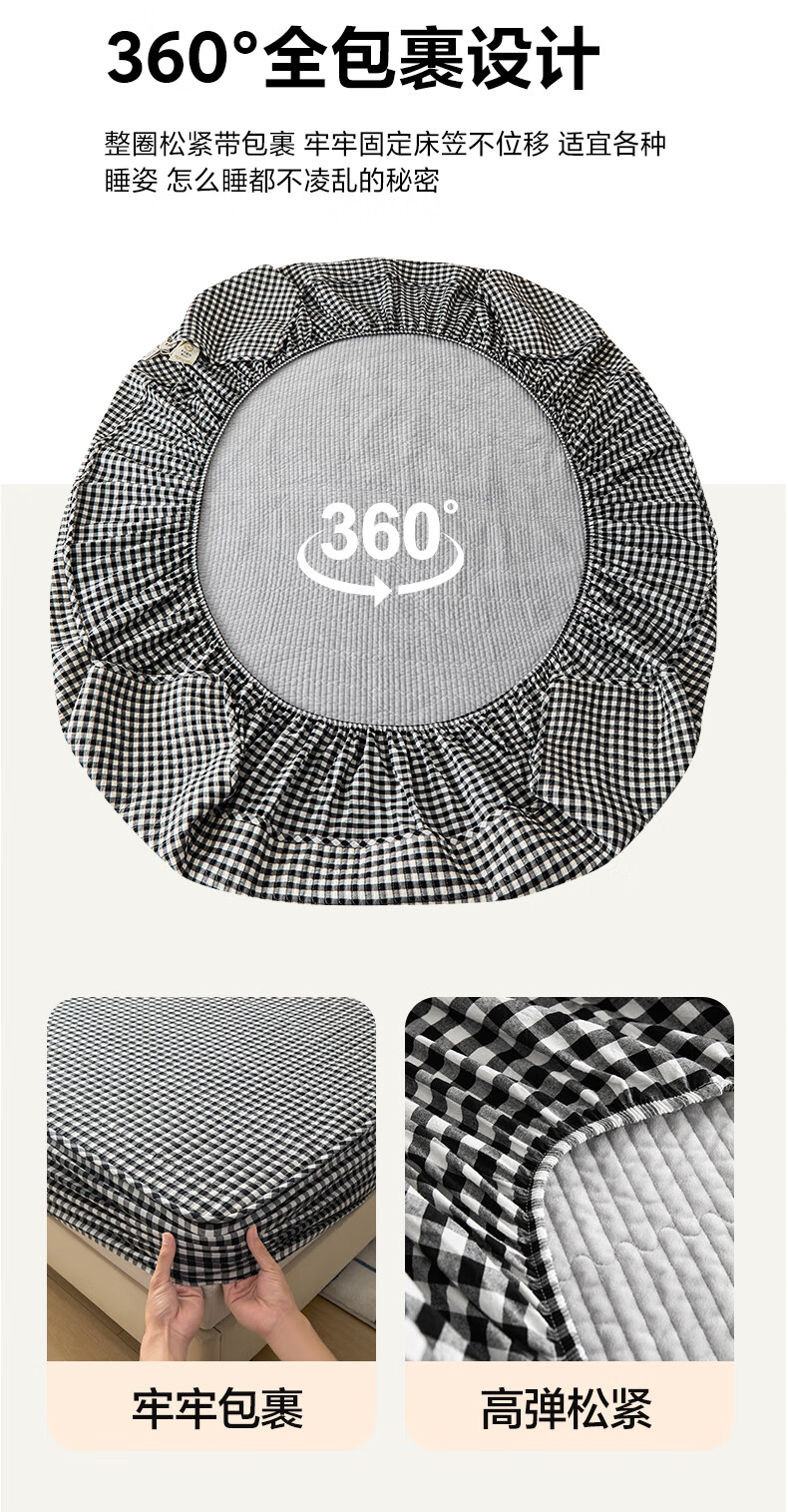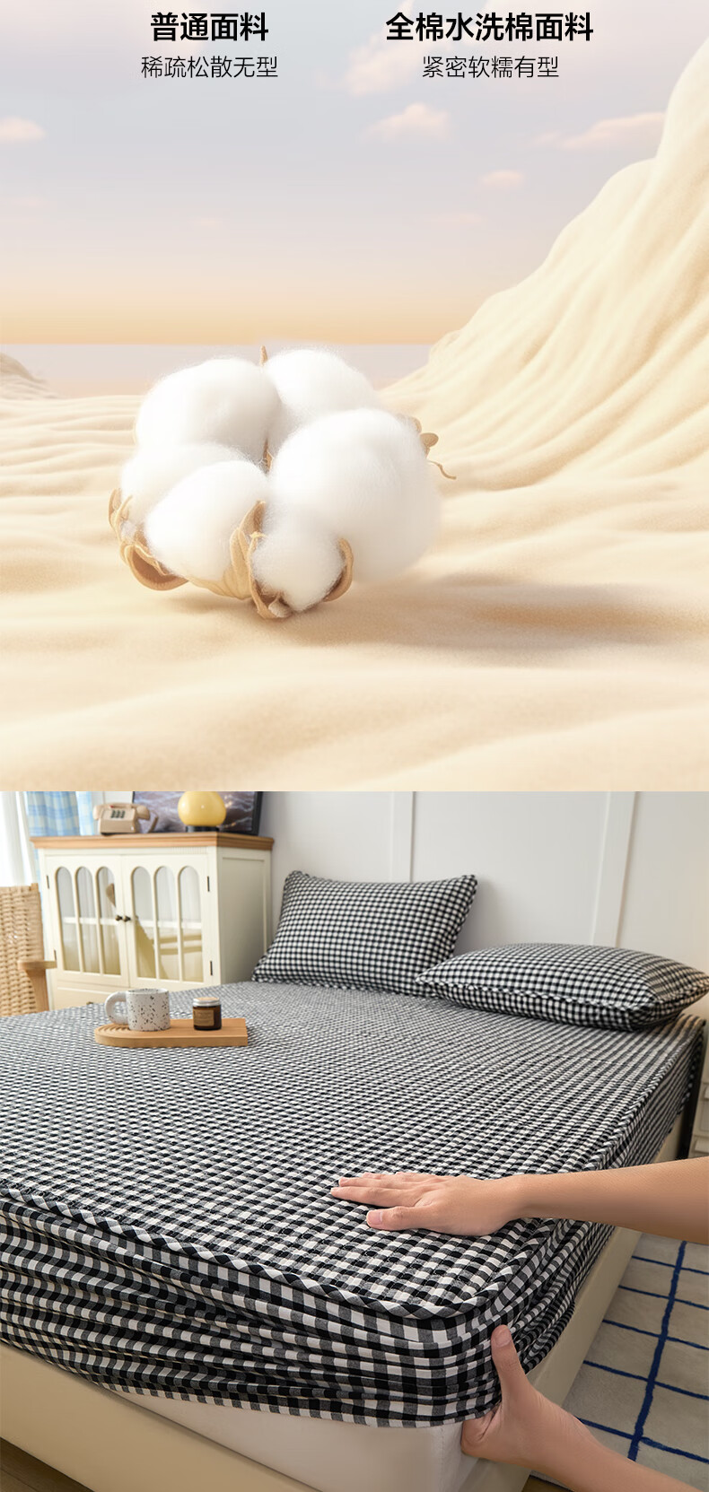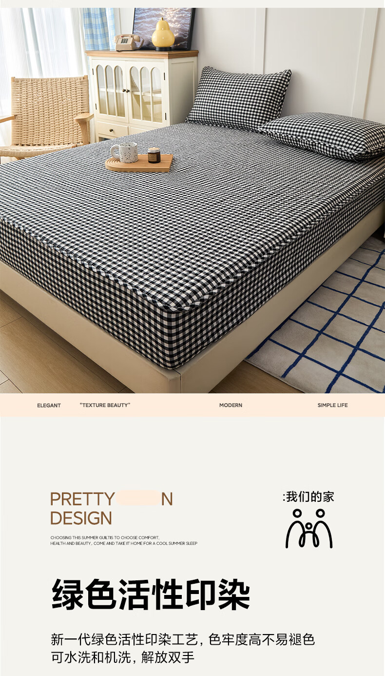 Xiyouyou 2025 new type A cotton yarn-dyed washed cotton plus baby velvet double-sided fitted sheet student dormitory single product warm velvet-black and white checkered 90*200cm single fitted sheet