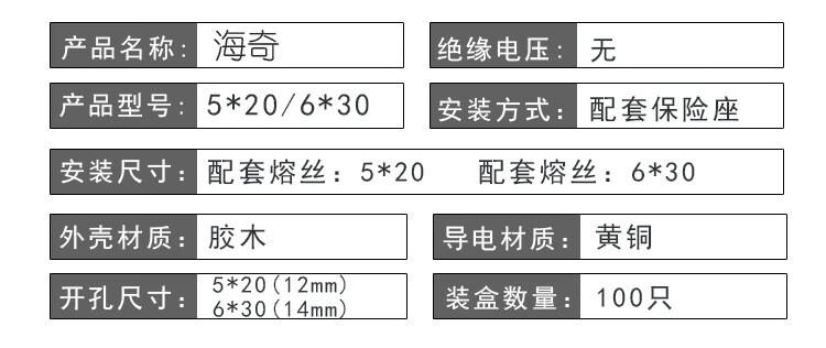 Haiqi FUSE fuse holder 5*20mm 6X30 spiral fuse holder 100 pieces, high temperature resistance 6*30mm (100 pieces)