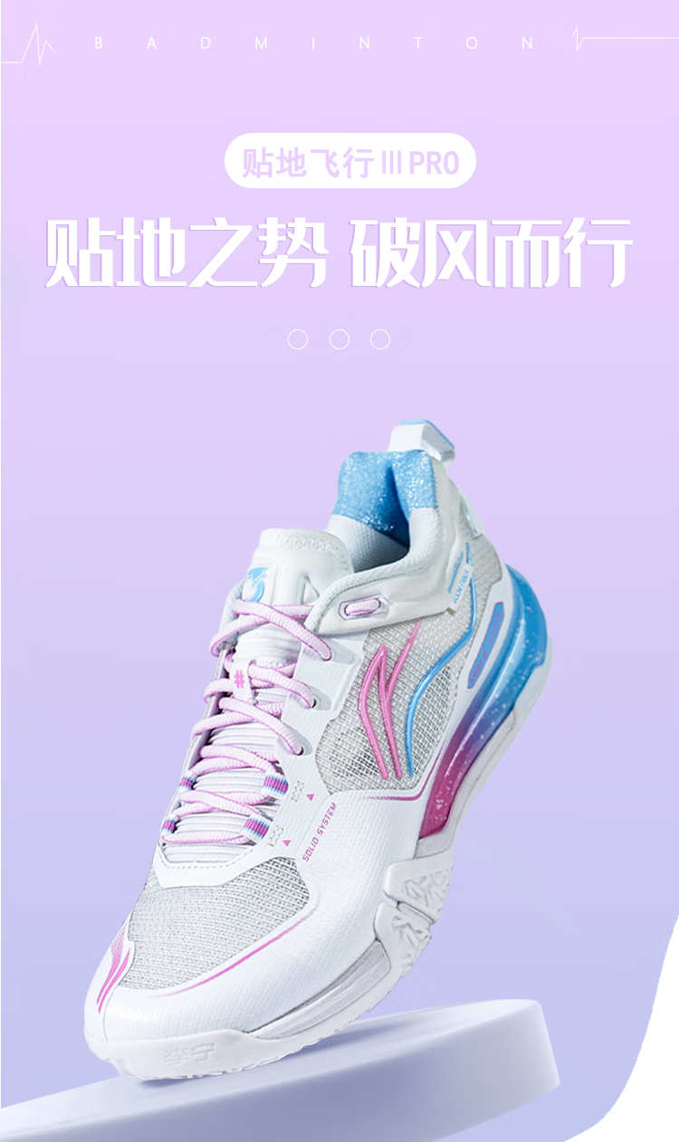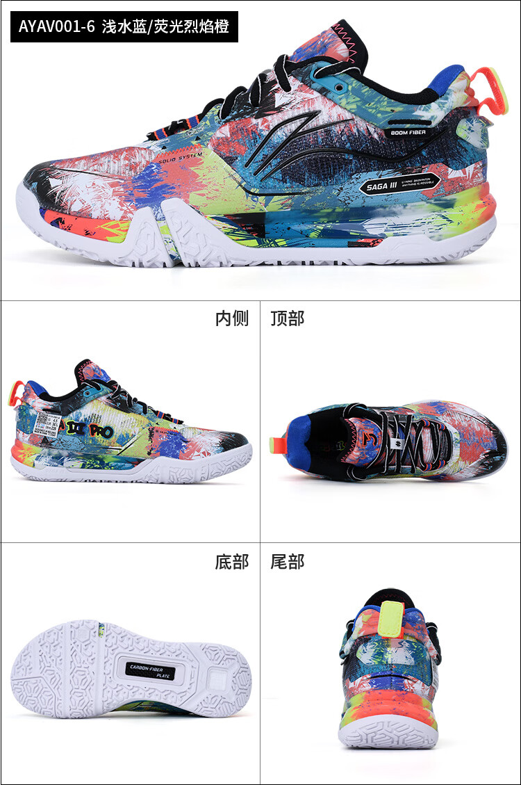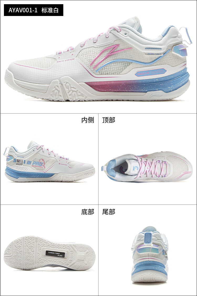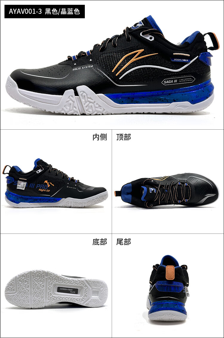 Li Ning (LI-NING) 2025 new product ground flying 3 PRO badminton shoes professional competition training carbon plate shock-absorbing anti-slip sports shoes Night Elf AYAV001-3 Black/Crystal Blue 43 (270mm)