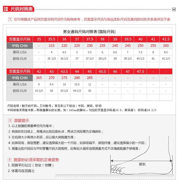 China (cm) 36 - 37 38 - 39 40 - 42 43 - 44 45 - 47