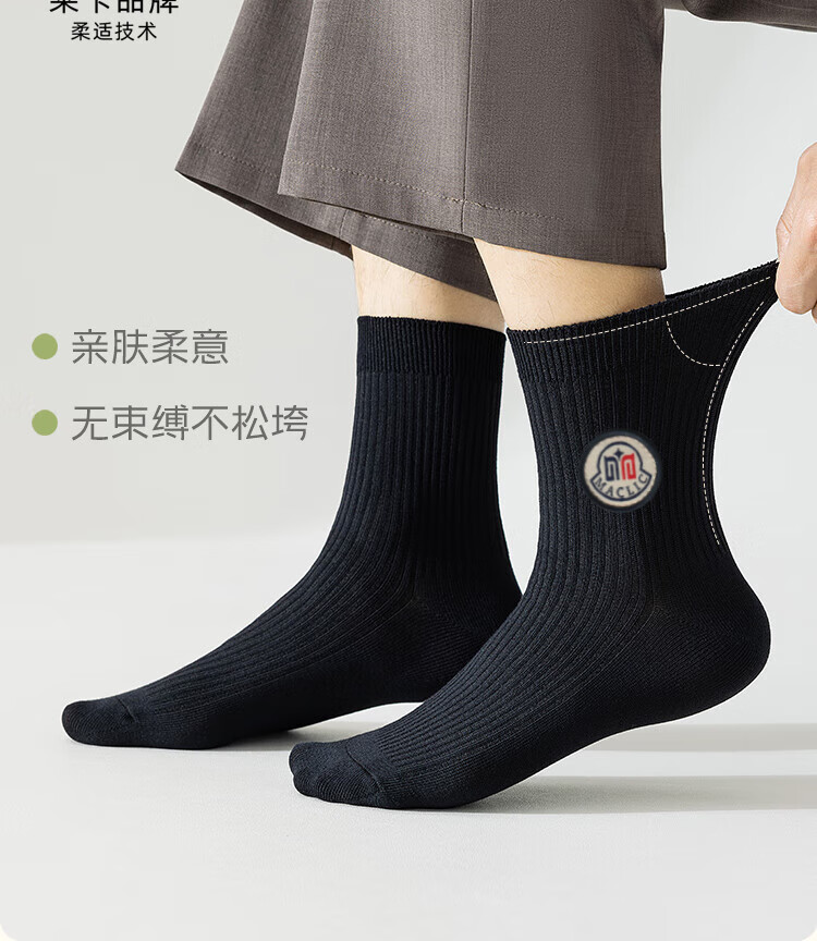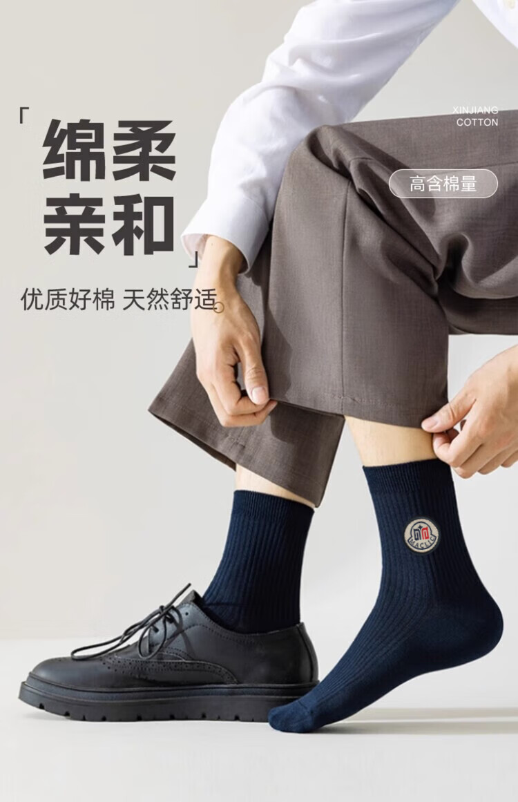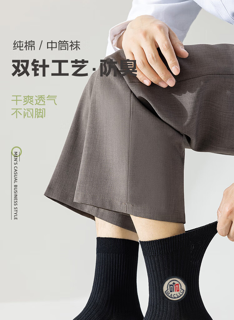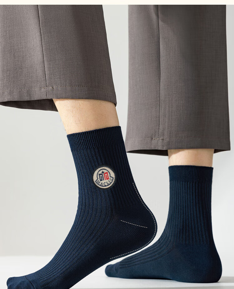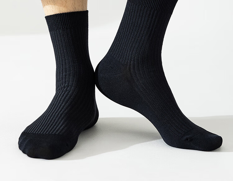 Mengbilin navy blue spring and autumn socks men's four-season pure cotton socks mid-calf socks anti-foot odor and sweat-absorbent cotton dark blue suit black*2+light gray*2+dark gray 5 pairs upgraded V-level anti-pilling/10A anti-bacterial, anti-odor and sweat-absorbent one-size-fits-all (collect and purchase)