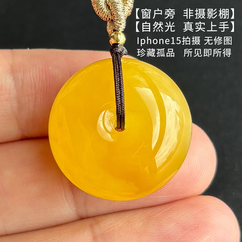 Yuzhi 1 object 1 certificate 1 shot natural Russian chicken fat yellow beeswax safety buckle pendant for men and women amber pendant 5.46g G5528 rare collection about 24*14 mm