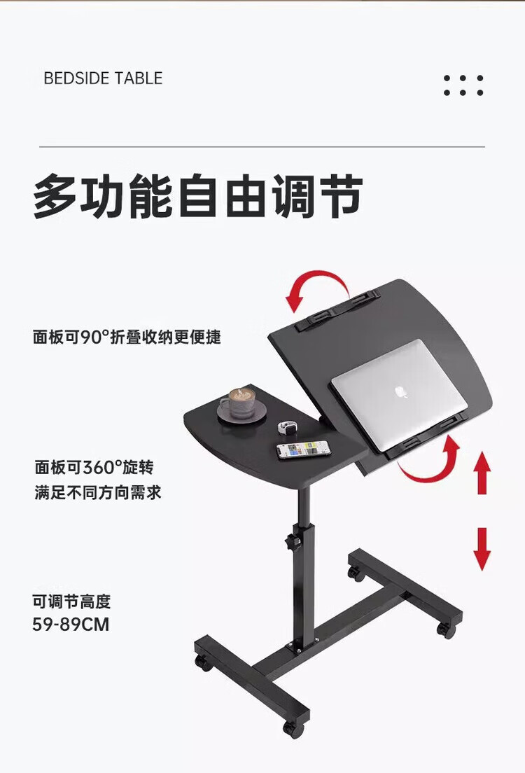 An Luosen bedside computer desk bedroom home pulley movable learning desk table lifting bed lazy desk single bar black 80*40cm