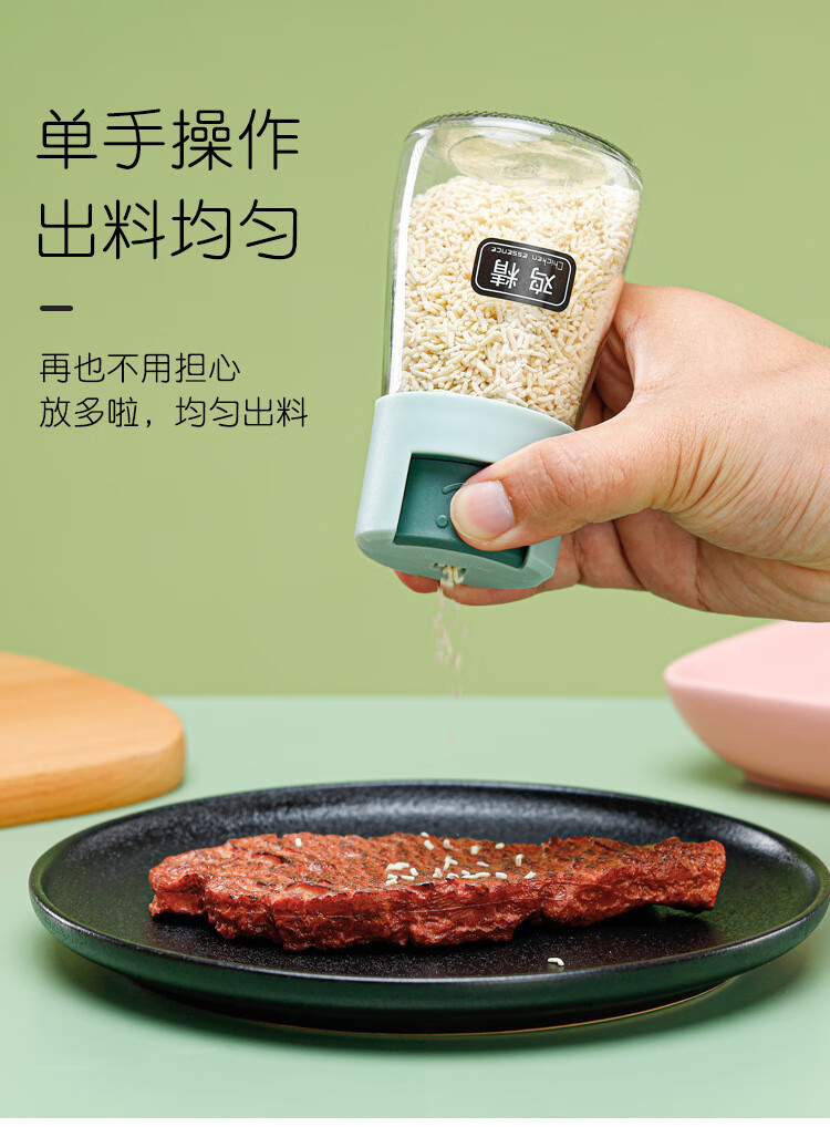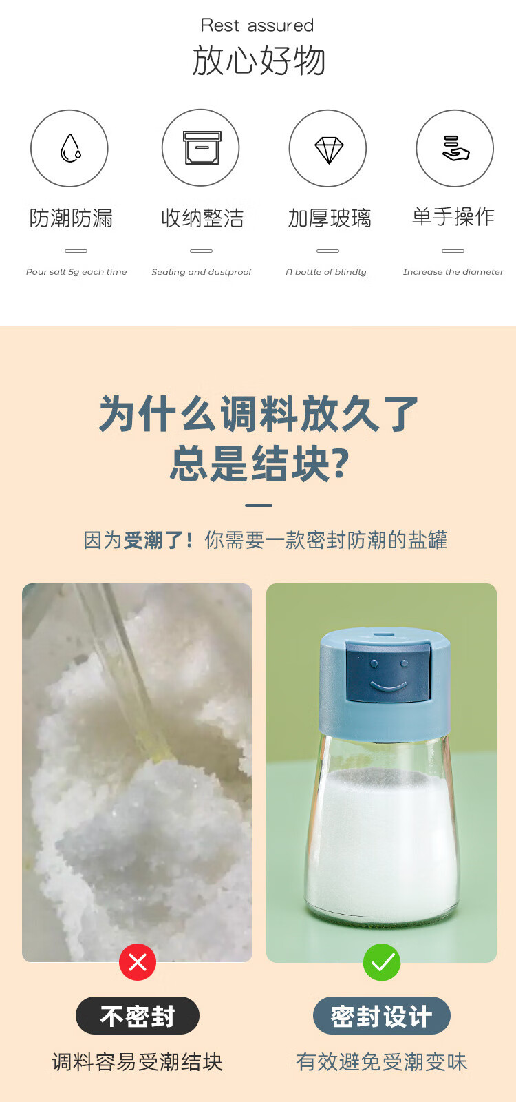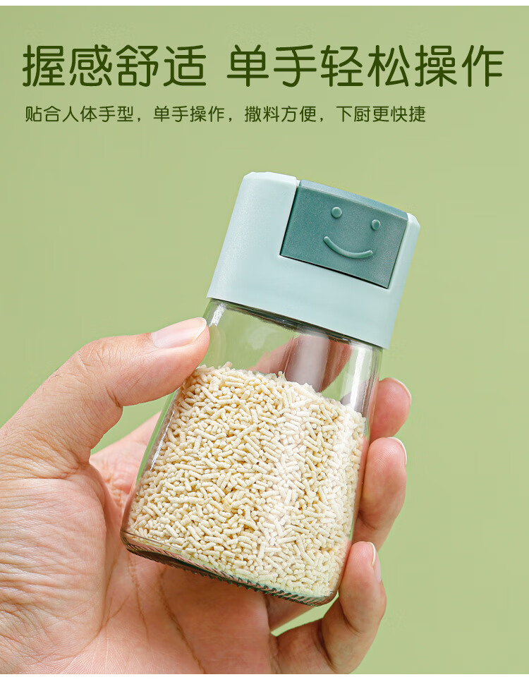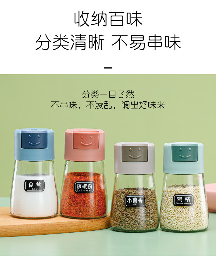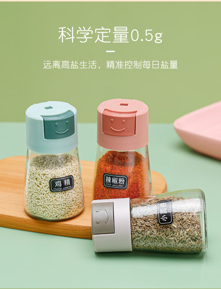 JCZS Japanese black technology quantitative salt jar kitchen glass push-type salt control bottle salt and MSG special jar seasoning box three-piece set - blue, pink, gray