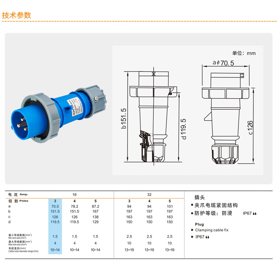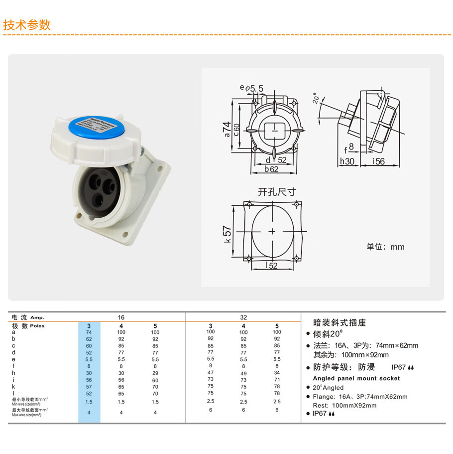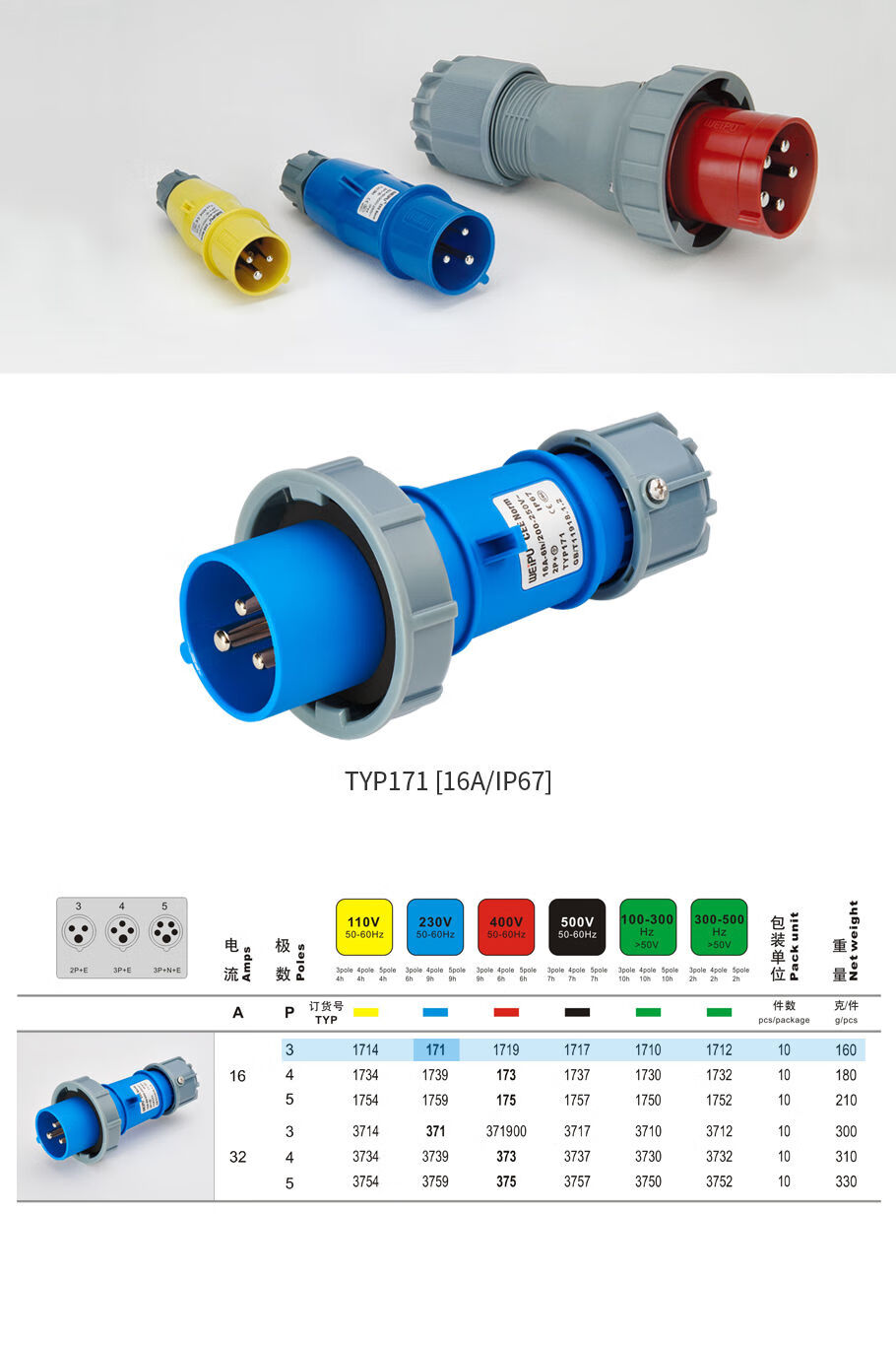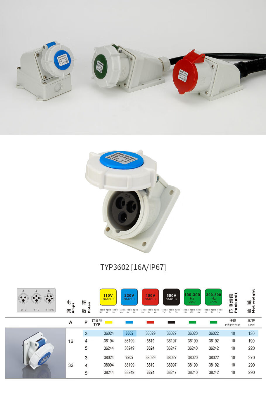 Weipu industrial plug TYP171 with TYP3602 concealed inclined socket (16A3 core) waterproof grade IP67 plug + socket
