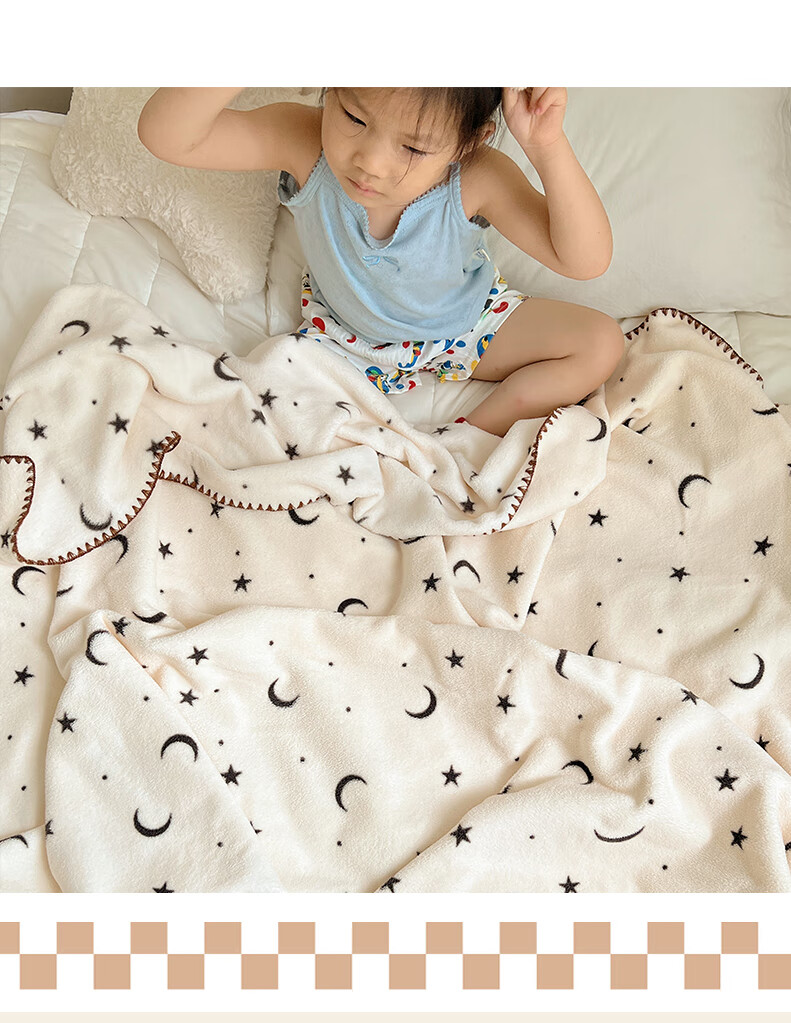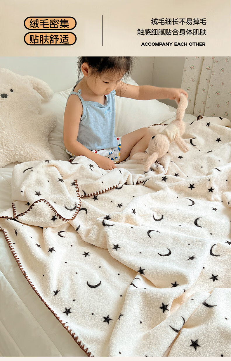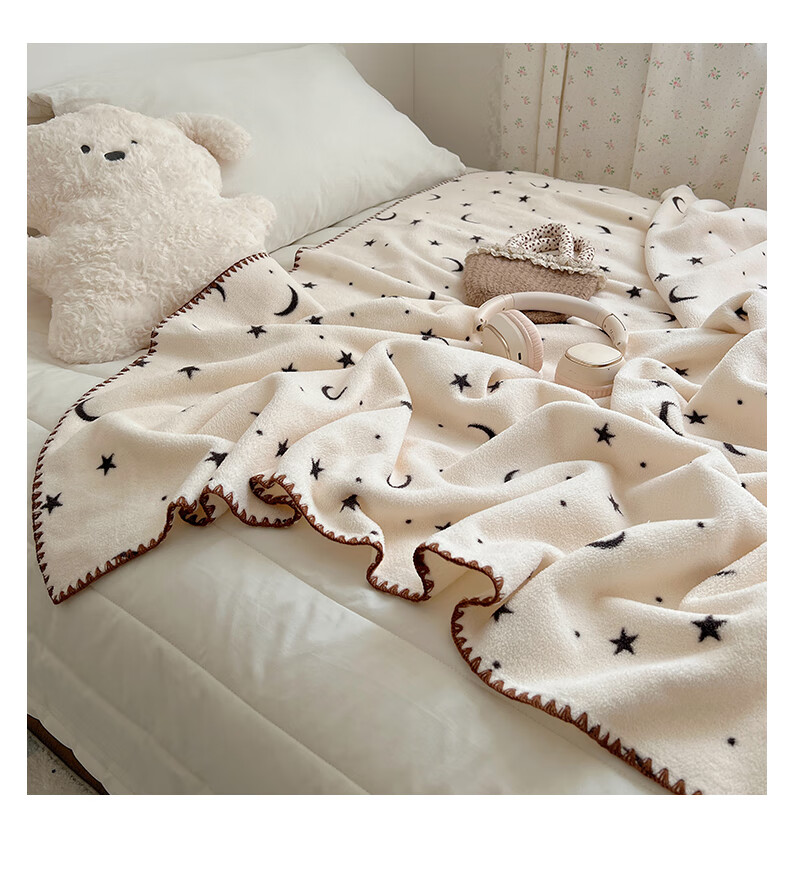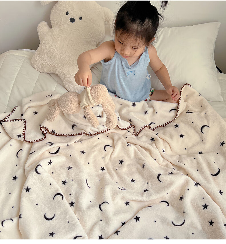 Su Xuan's new rice grain velvet blanket double-sided baby velvet children's nap blanket office nap air conditioning shawl blanket Stars and Moon 95x150cm office nap blanket