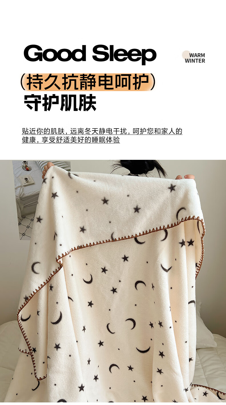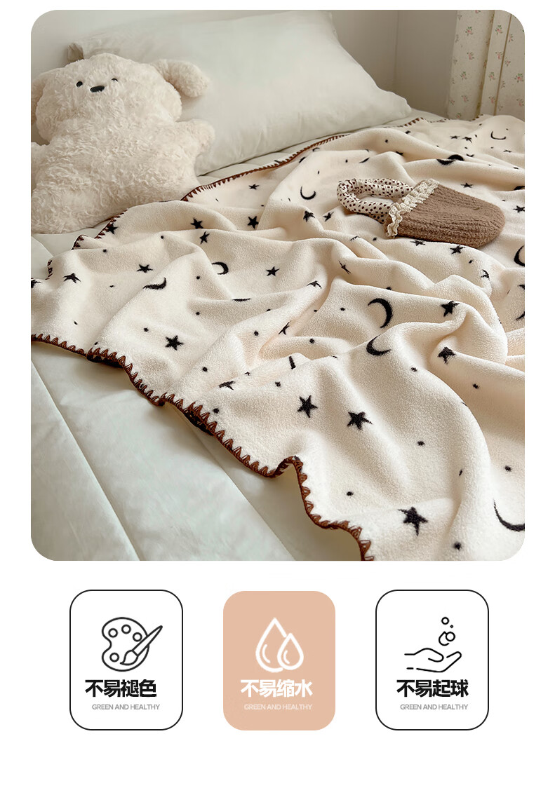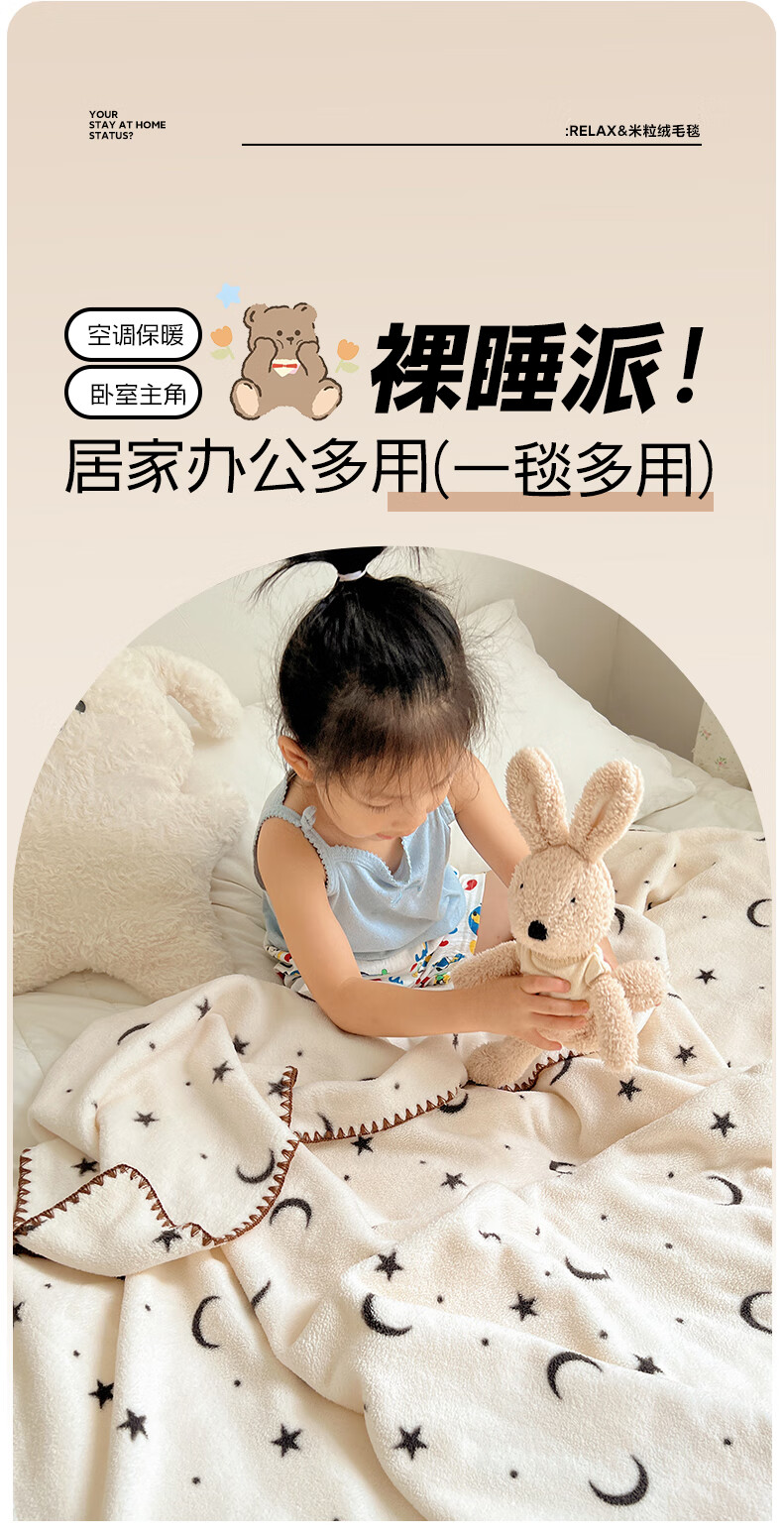 Su Xuan's new rice grain velvet blanket double-sided baby velvet children's nap blanket office nap air conditioning shawl blanket Stars and Moon 95x150cm office nap blanket