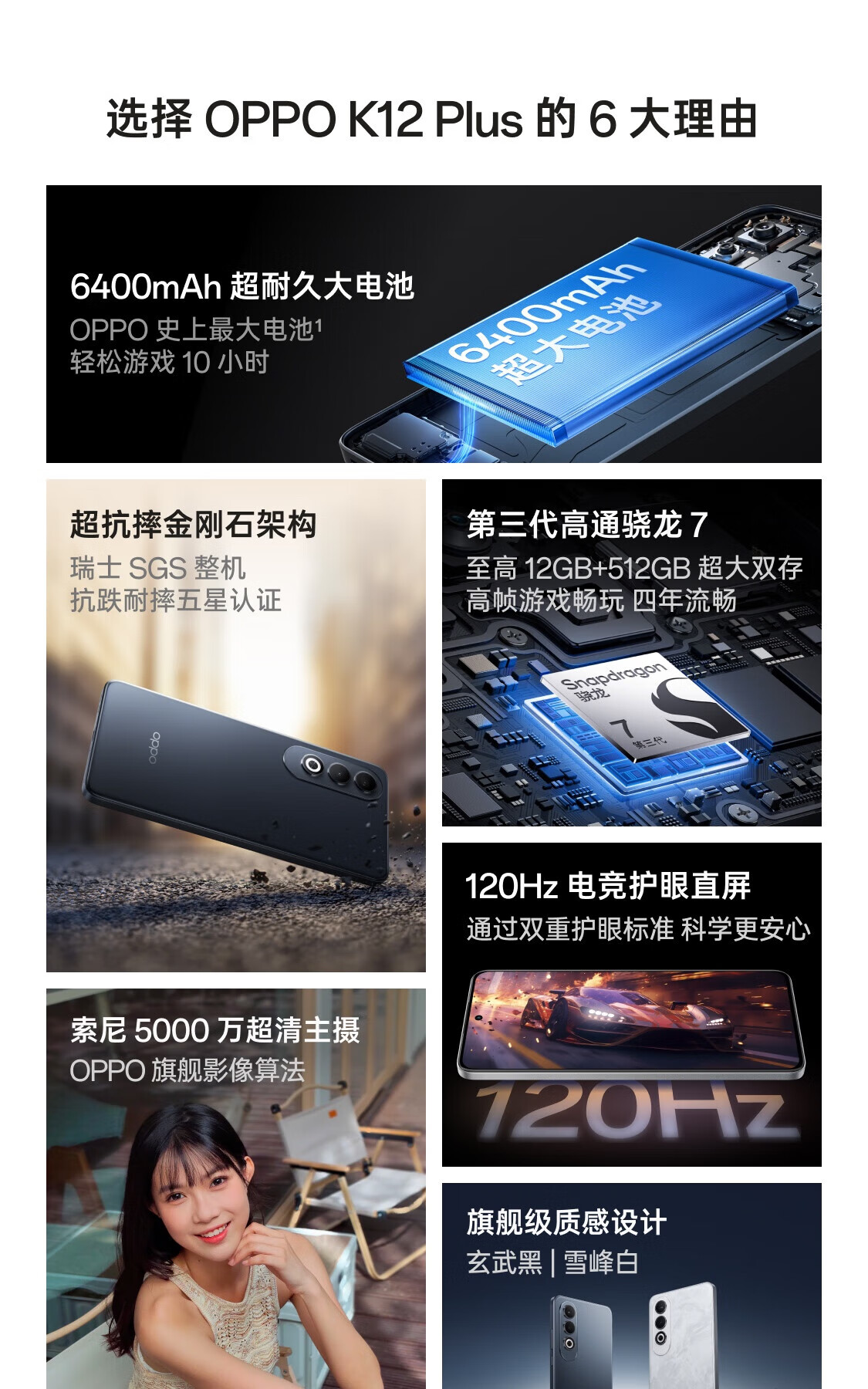 OPPO K12 Plus 3rd Generation Snapdragon 7 Flagship Chip OPPO K12Plus Snow Peak White 8GB+256GB Standalone+Electronic Warranty Card Registered+One Year Store Warranty