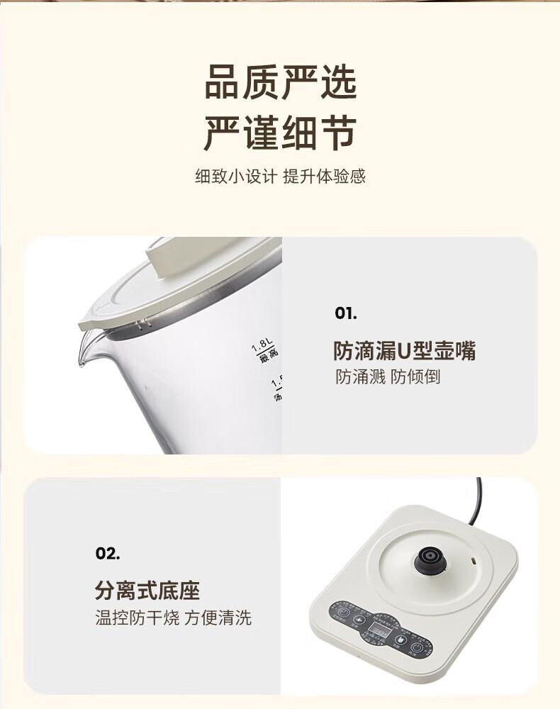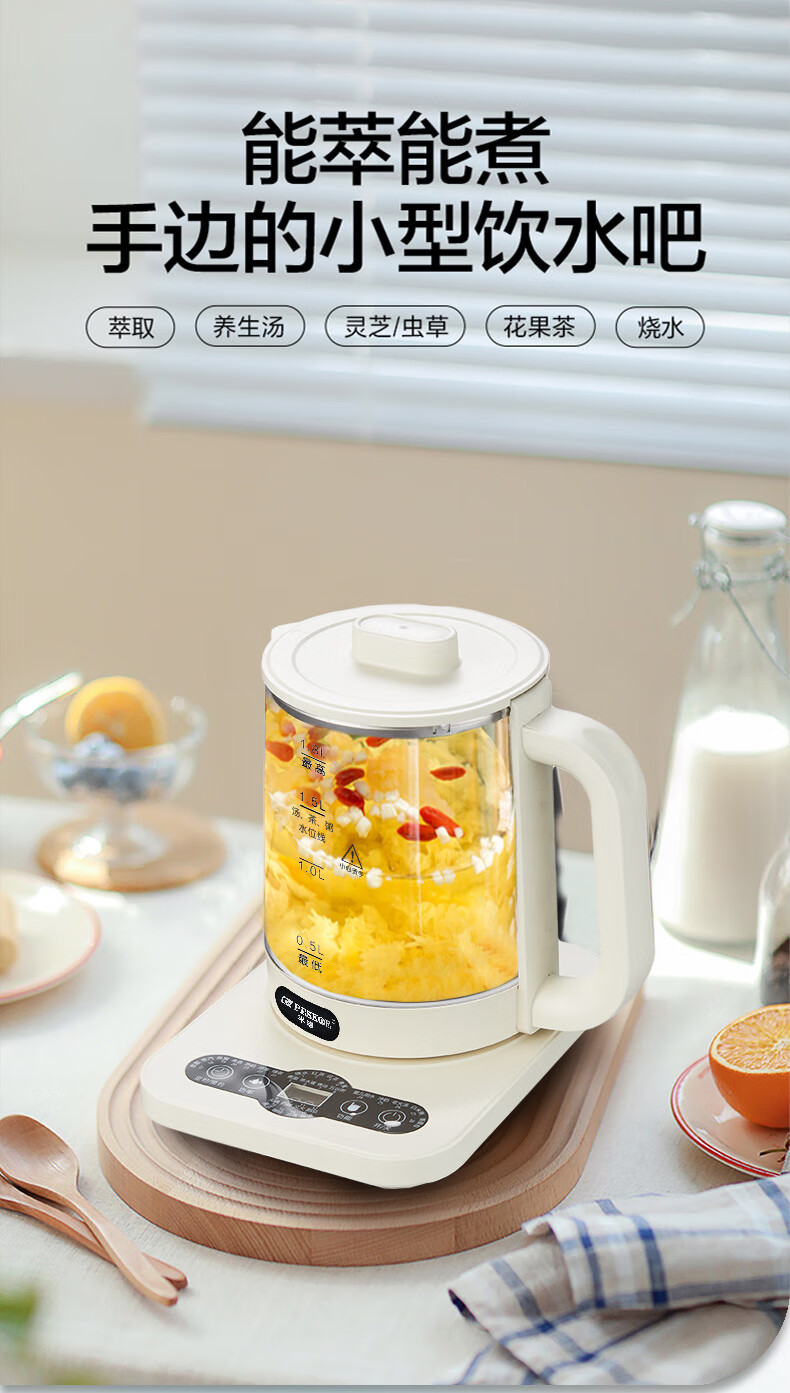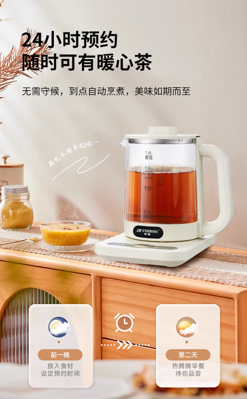 Hemisphere (PESKOE) health pot, tea boiler, multi-function kettle, intelligent constant temperature electric kettle, electric kettle for tea kettle, multi-stage thermal insulation mini glass flower teapot, high cost performance (304 heating plate + high borosilicate kettle body) 1.8L