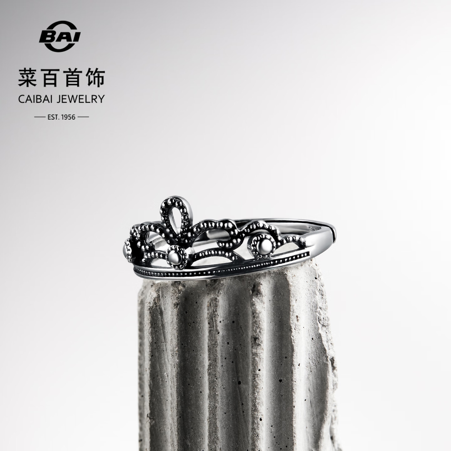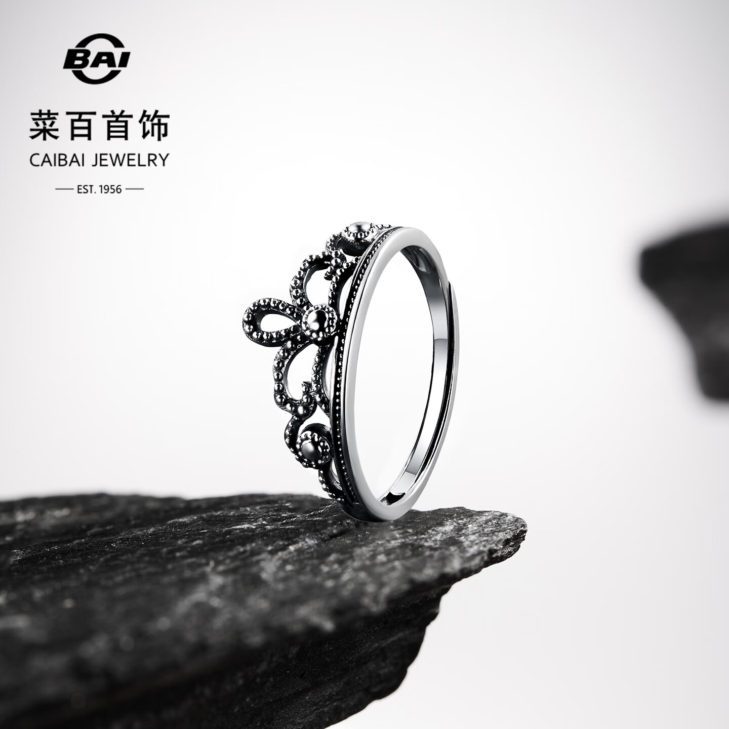 Caibai Jewelry Platinum Ring PT950 Electric Black Craft Crown Ring Platinum Open Ring Priced BJ Platinum Ring Approximately 2.89g