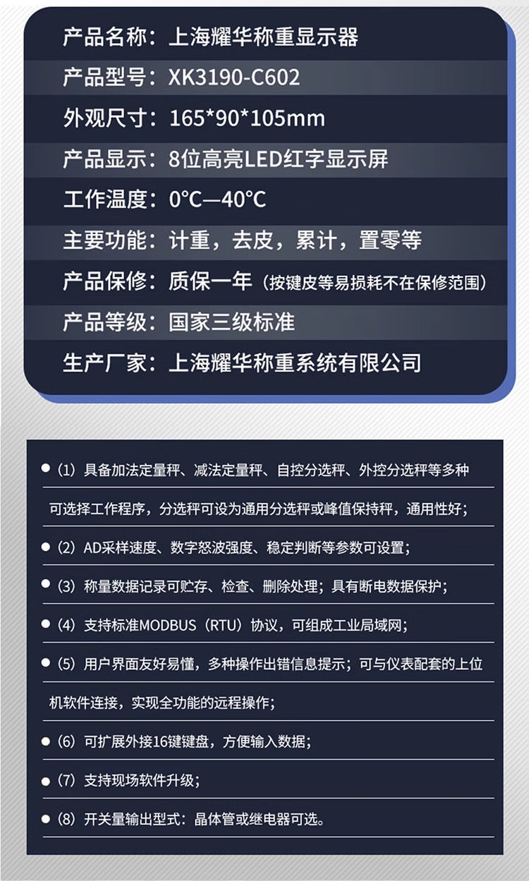 Shanghai Yaohua XK3190-C602 instrument electronic scale display weighing controller quantitative batching controller without relay box